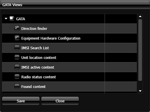 on the GATA panel. It allows you to define which views you want displayed on the GATA field unit tabs. Currently only the Direction finder is implemented, for further information refer to the Direction finder pop-up.
