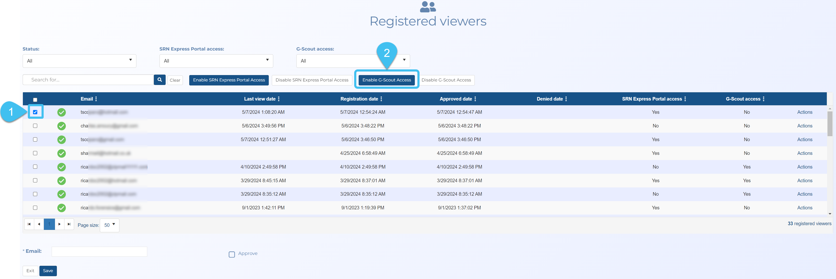 In the table, select the check-box next to the new email then click Enable G-Scout Access.