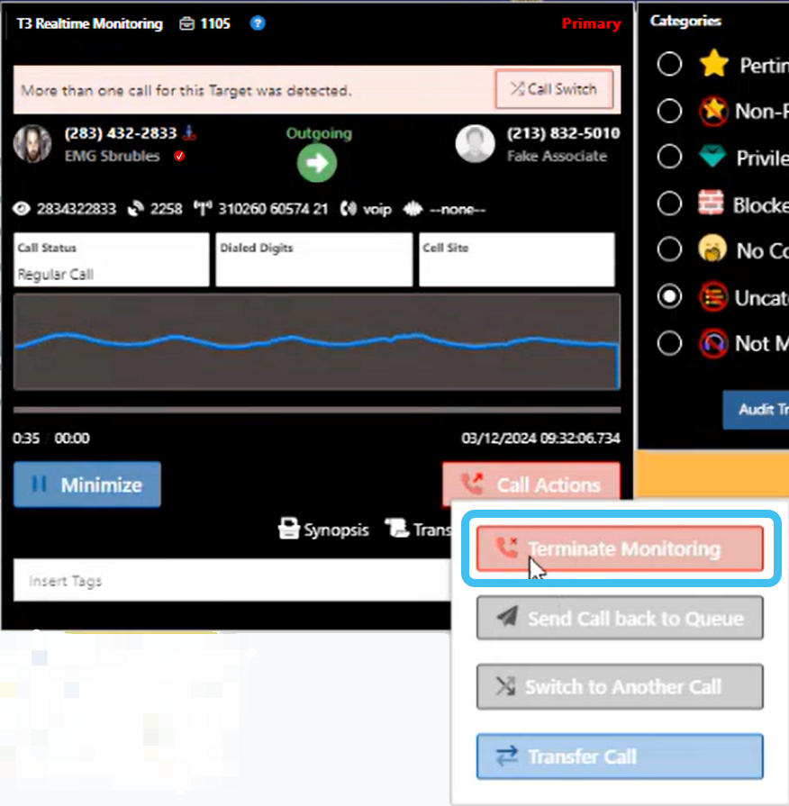 Select Designated minimization, if you want to specify a time range when you typically do not monitor calls, perhaps over night, and would prefer that the calls were automatically minimized. The benefit of doing this is that it informs the judge and the court, that during a certain period, calls are not monitored so they do not then query the reason for unattended calls. Once selected you must enter a start and end time. Note, if there is a monitor logged into the queue during this time then the call is still currently automatically minimized.