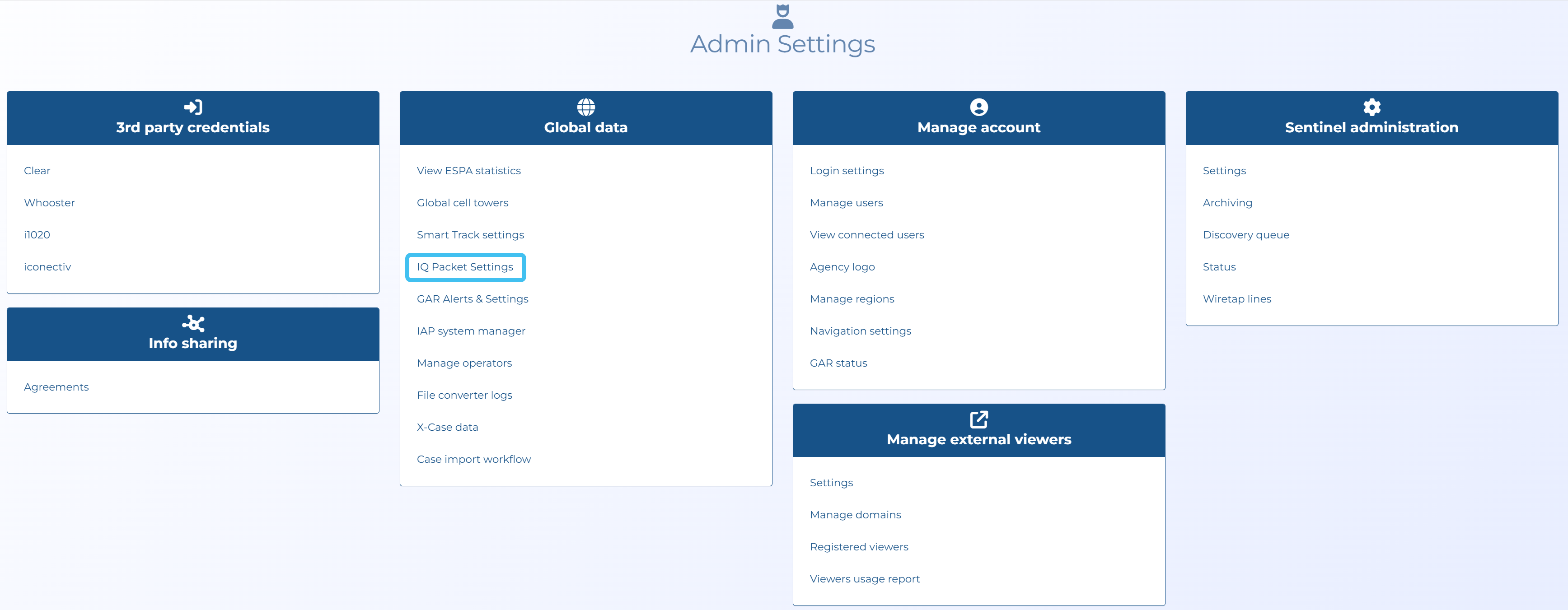 If in the future you need to edit or delete a global IQ packet configuration you can use the Admin Custom IQ packet report settings screen.