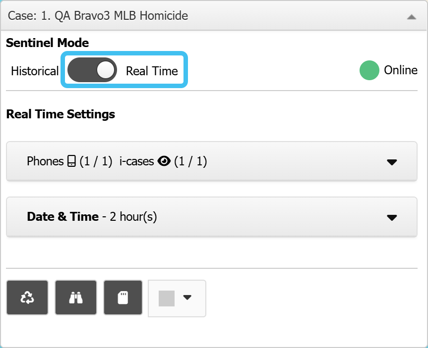 at the top-right of the map, then select Case data. The Case data dialog box opens.