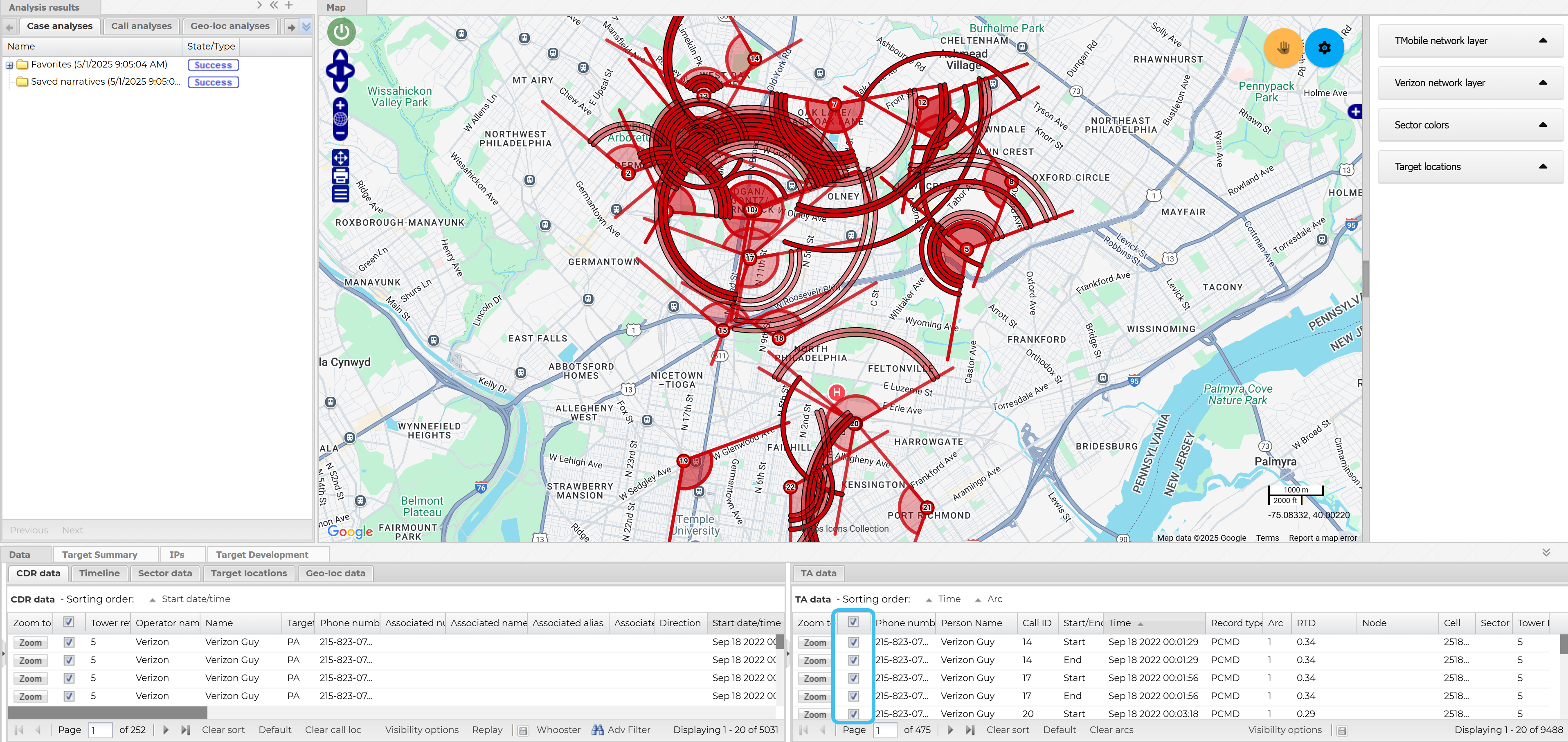 The exported map, including the TA arcs are now displayed on the map. You can use the map layers to show/hide the exported file.