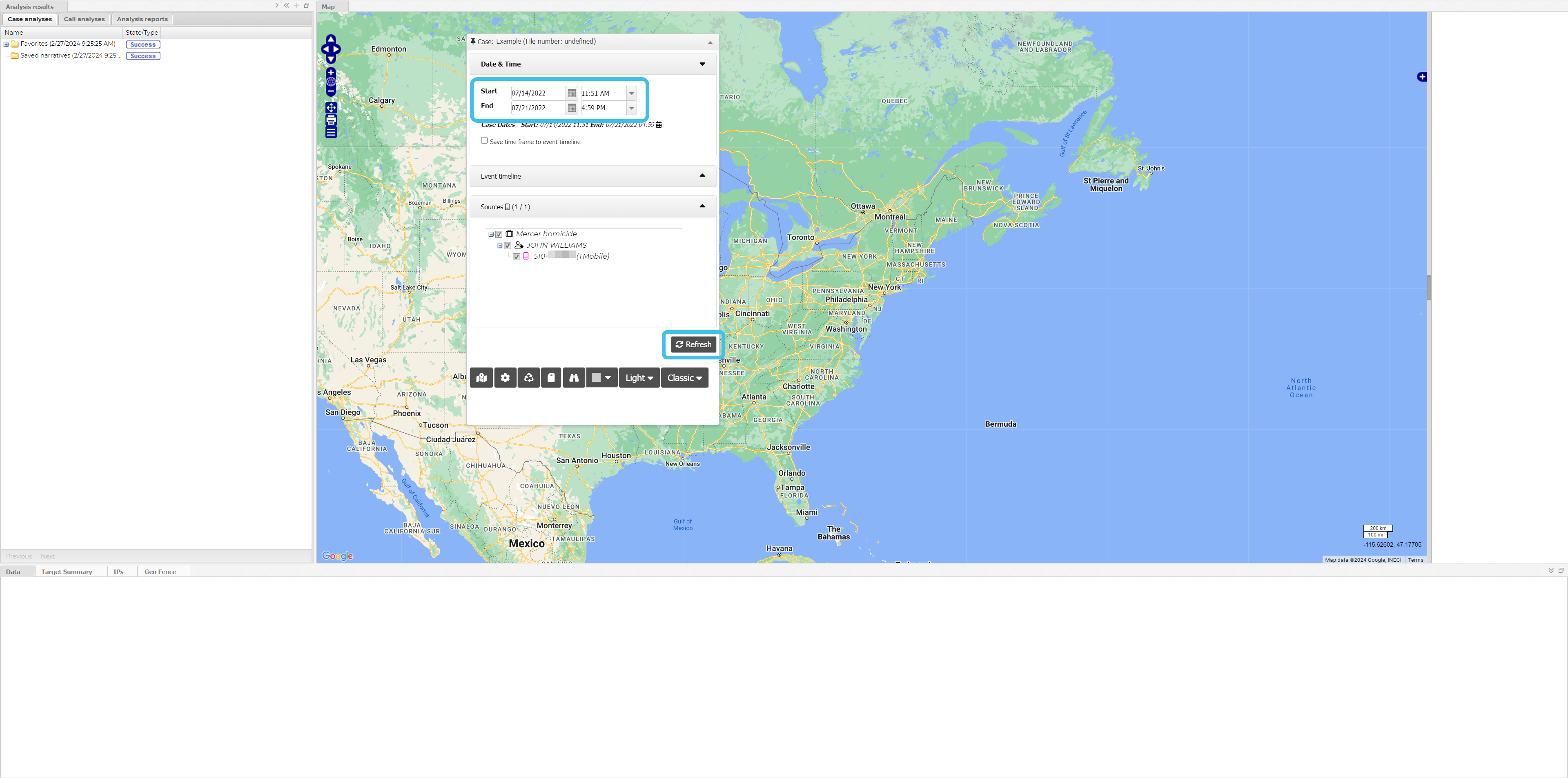, select the required data range then click Refresh. You can now use the Data view, Case management view and the Map view to analyze the case. For further information click the link below.