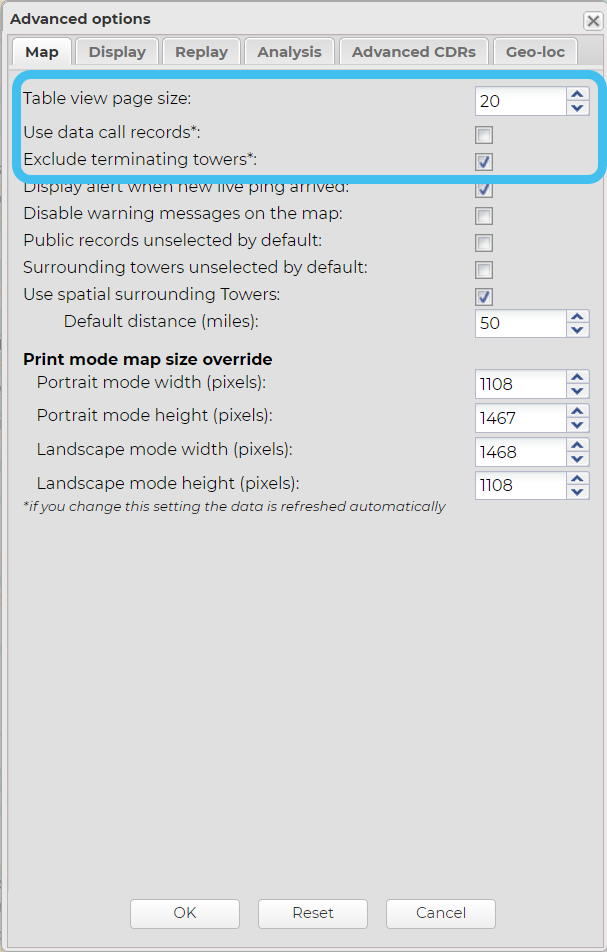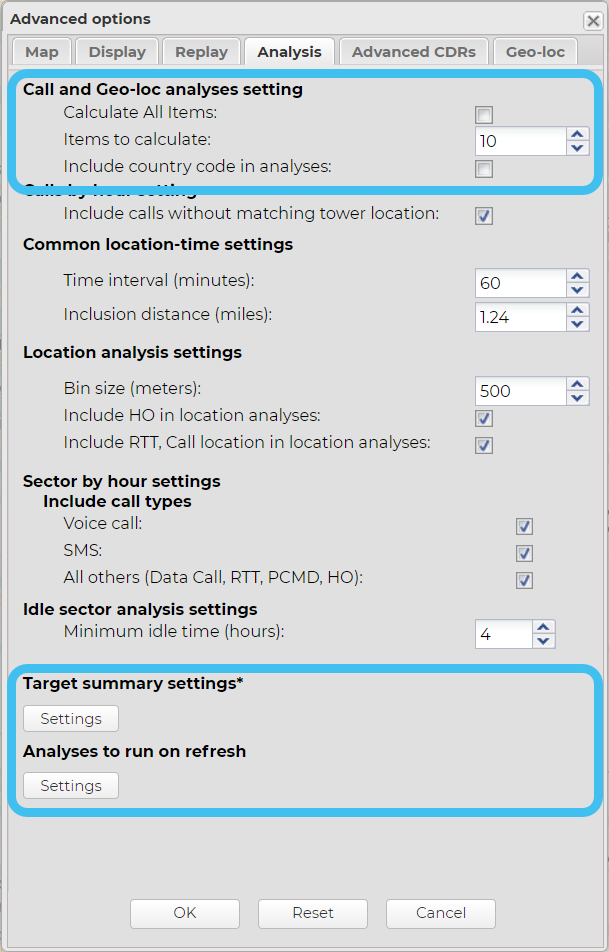 Before or during your analysis you may want to ensure you are using your required settings on the Advanced options dialog box, to do this: