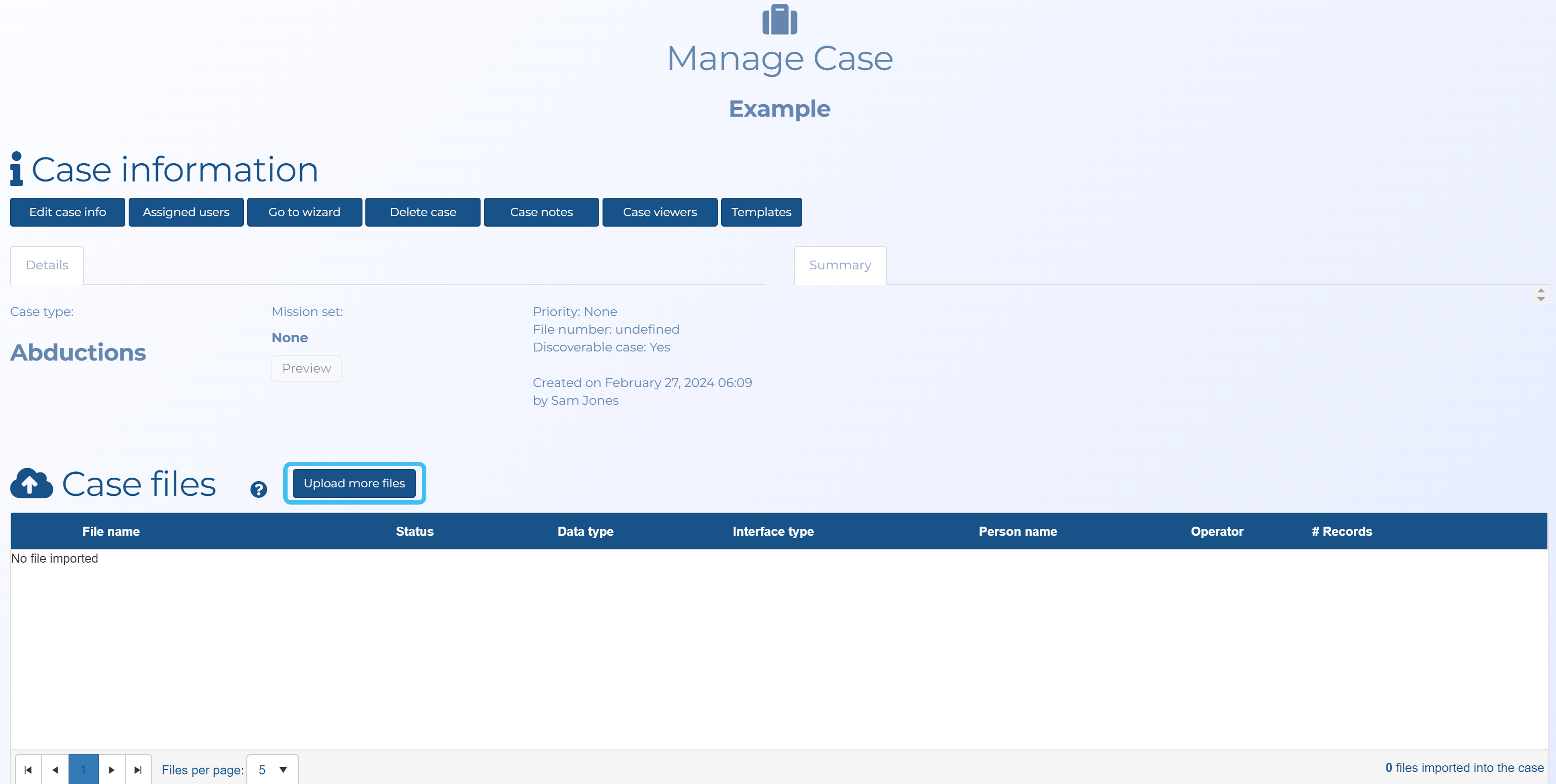 Click the case name, at the top of the screen, to return to the Manage case screen.