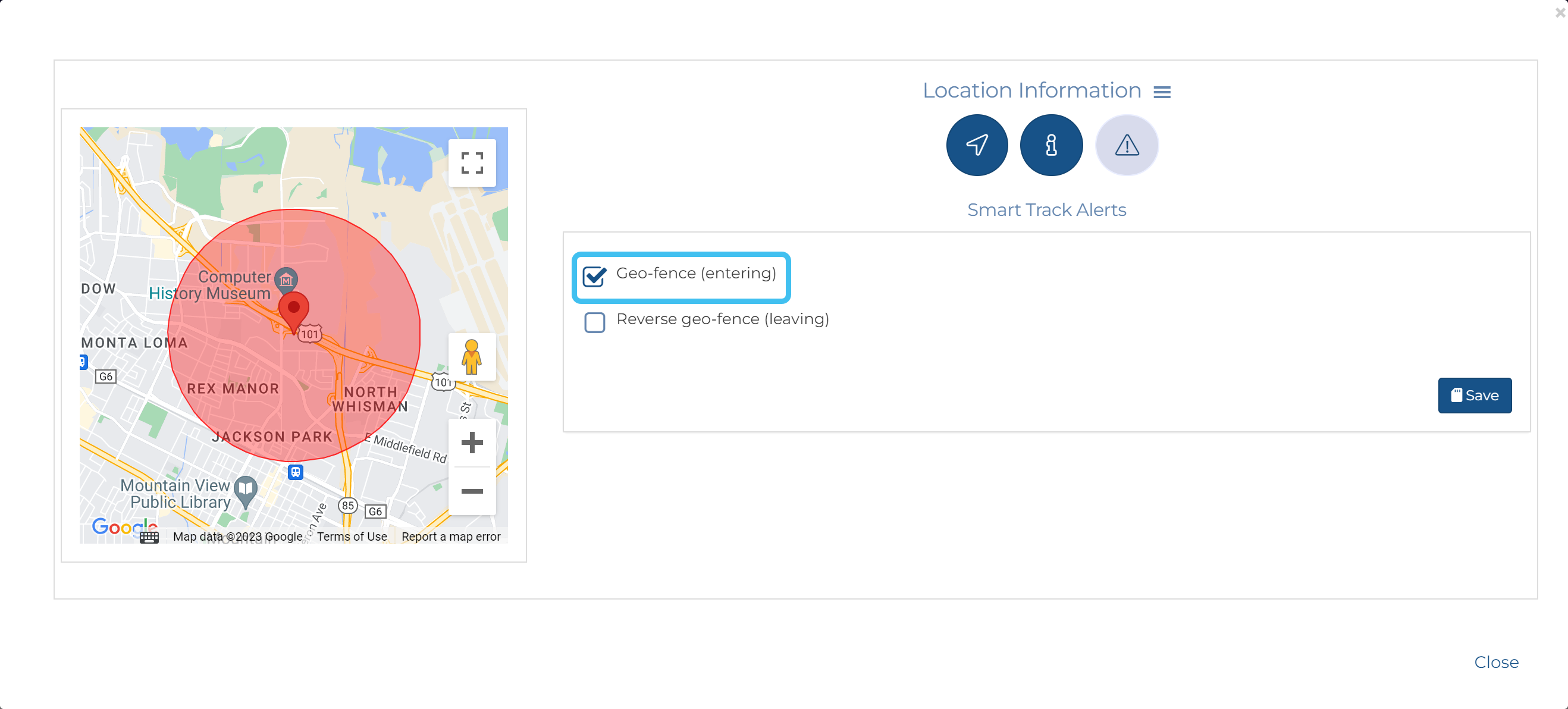 Find the location you want to add a geo-fence or reverse geo-fence Smart Track alert to using the search and filter to help you.