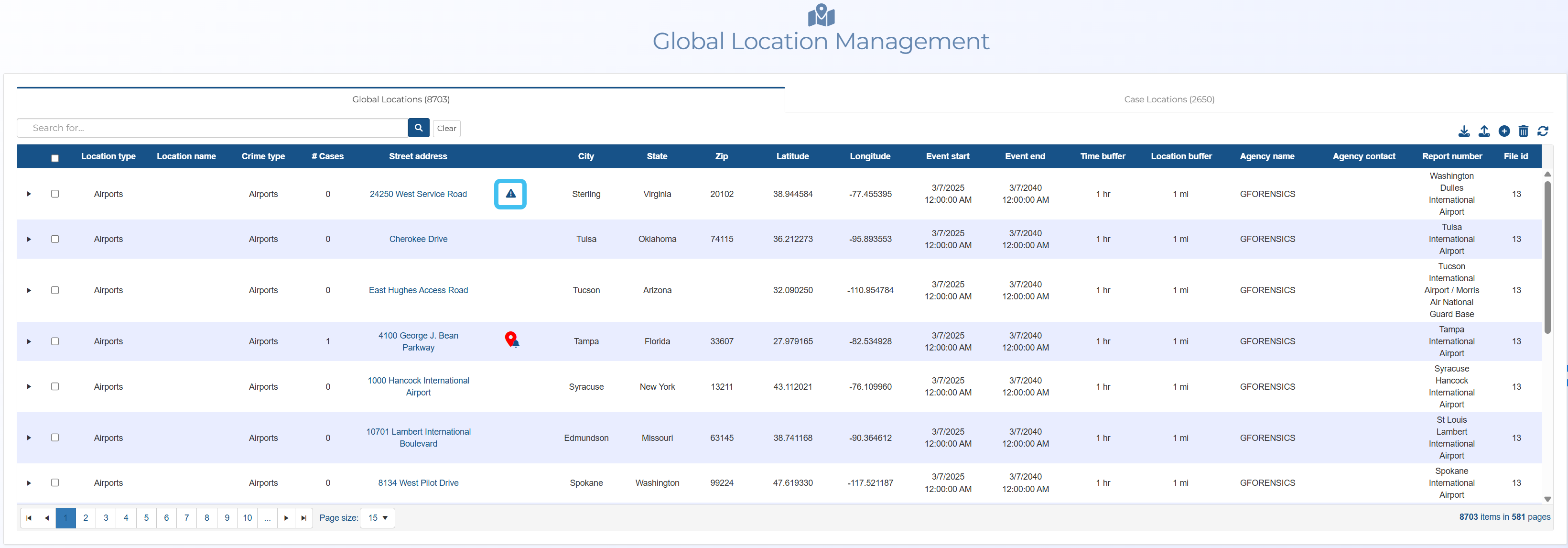 If you want to find all global locations that already have an active Smart Track alert use the Smart Track filter on the right-side of the screen.