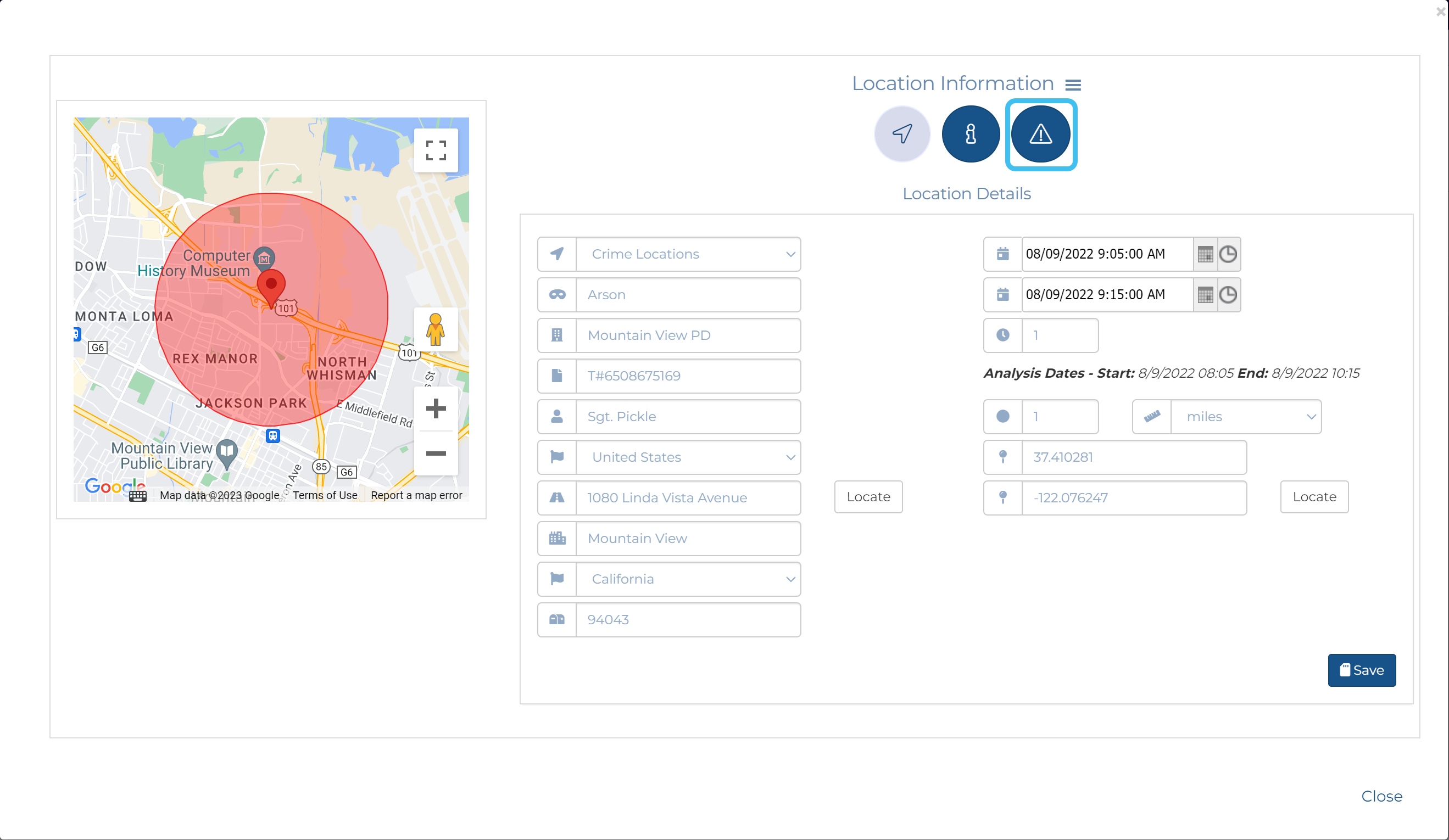 the geo-fence alert, which is based on the phone or vehicle being within a defined area, allows you to monitor if a person is entering a specific location, perhaps the region around an airport suggesting they may be taking a flight. This alert uses GPS ping, LPR and PRTT data.