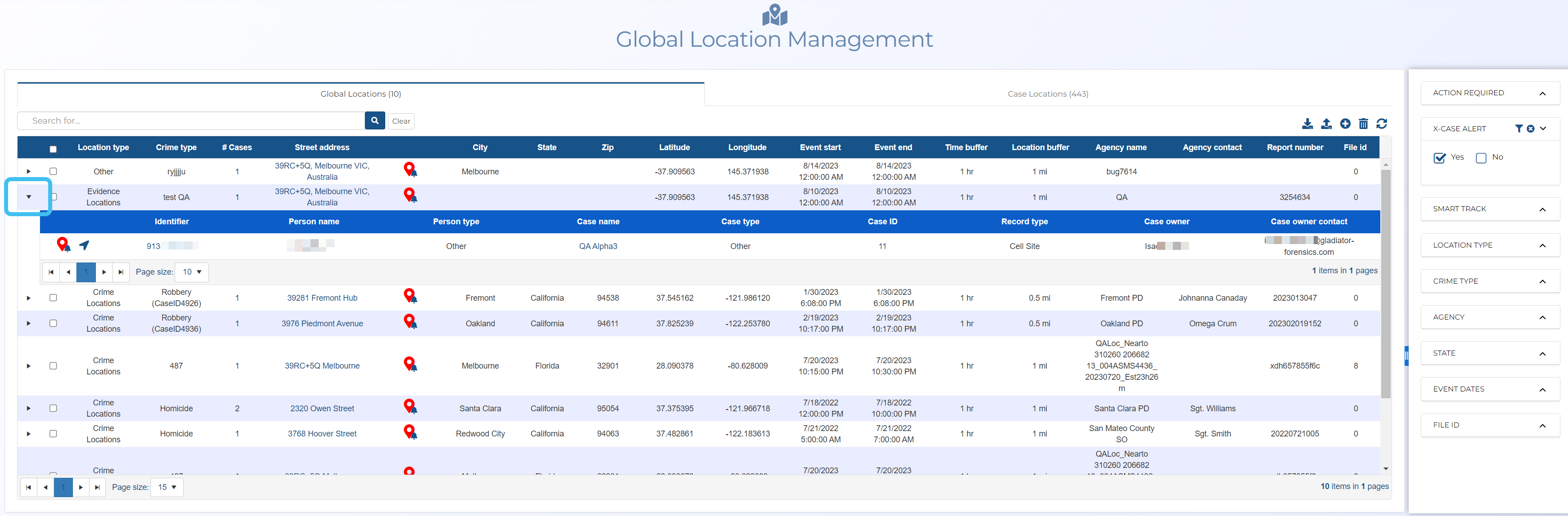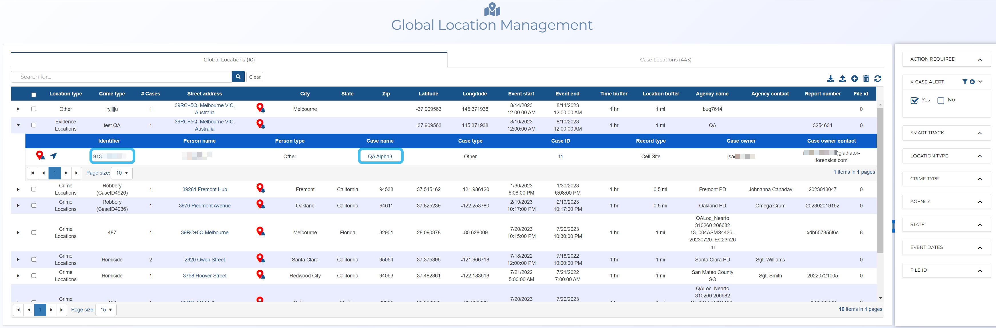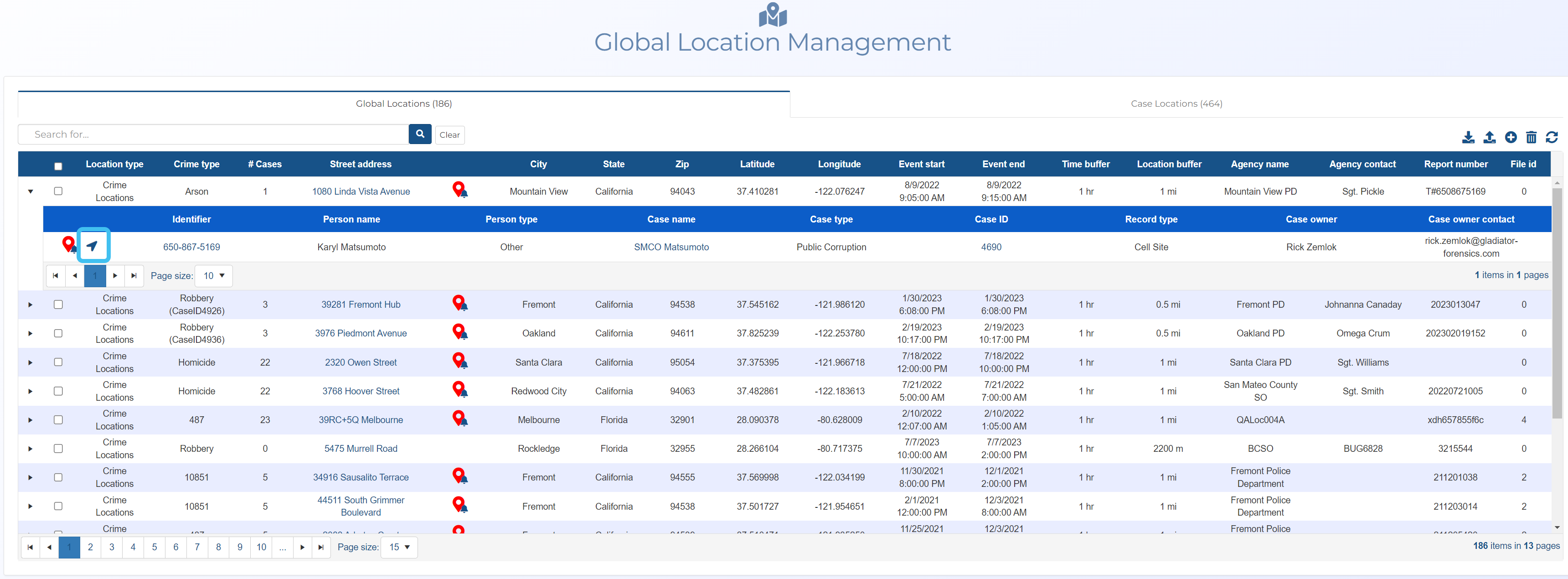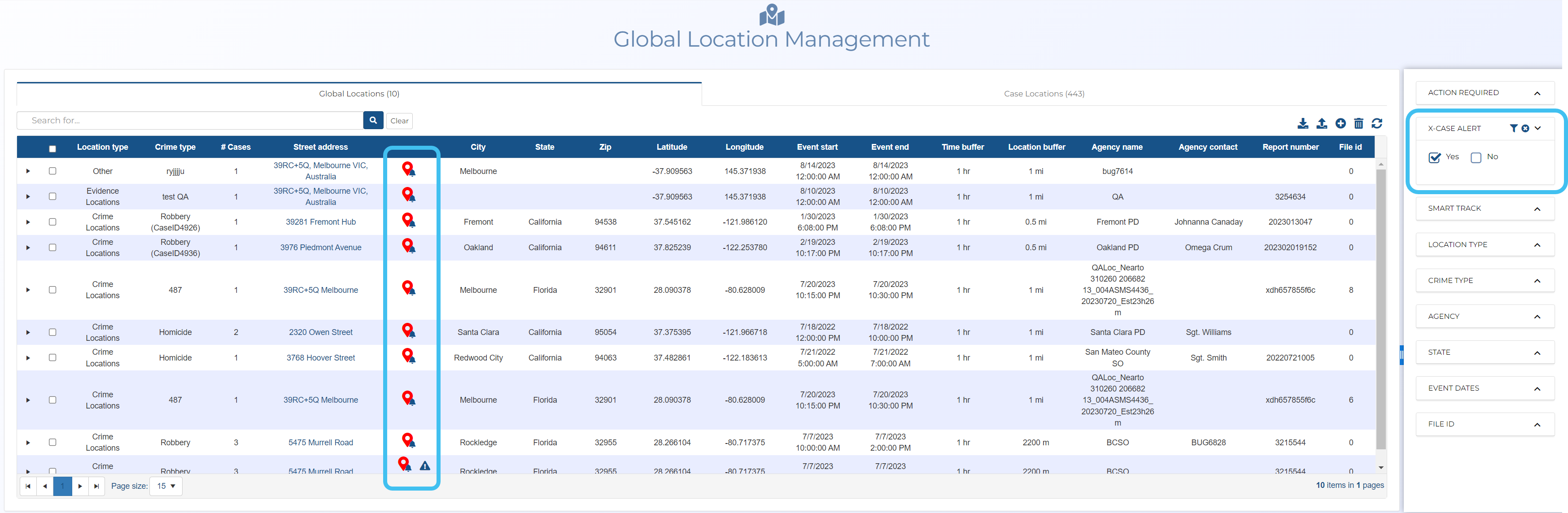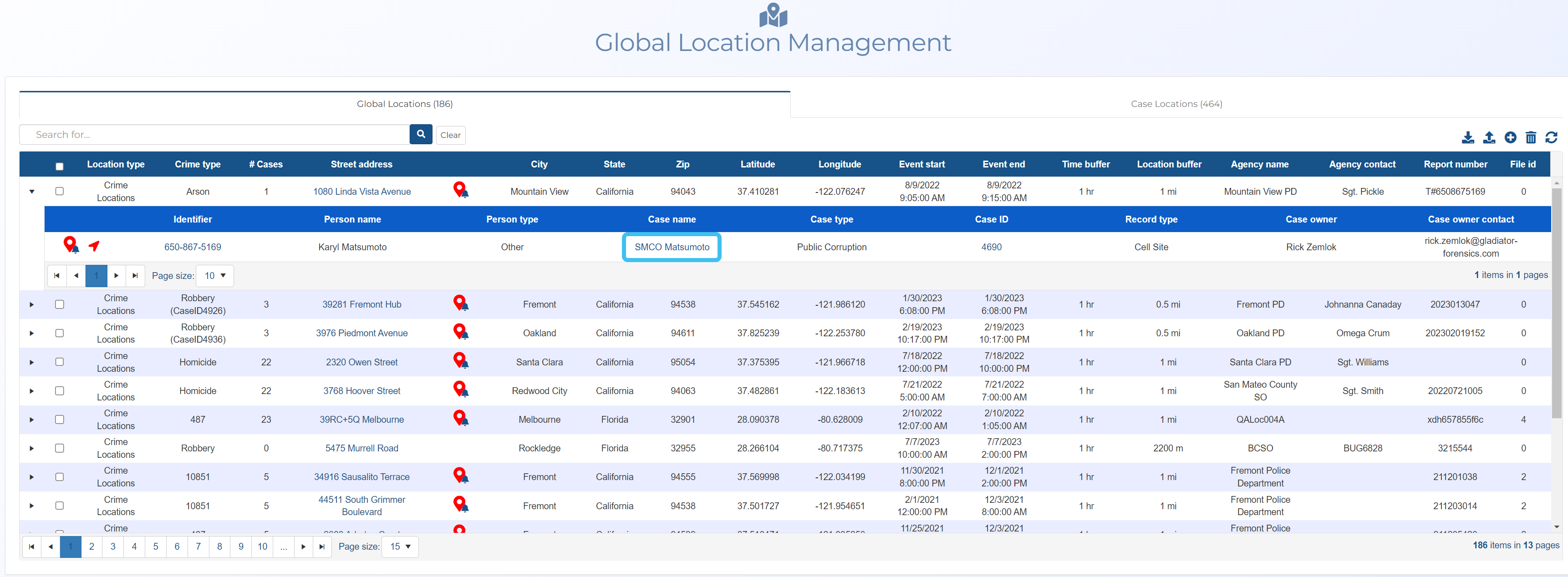 How to use the global location x-case alert to identify potential suspects