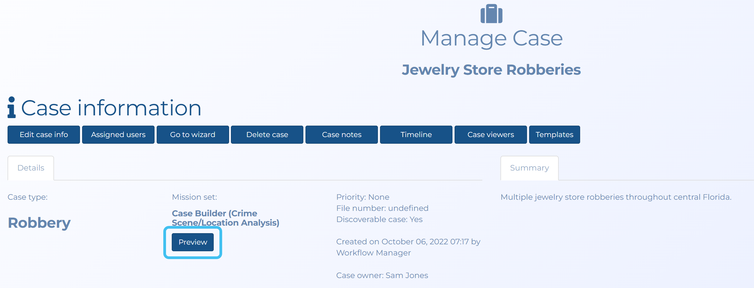 Review the case Summary to determine if the crime details are similar. If the case is similar you should continue to investigate.