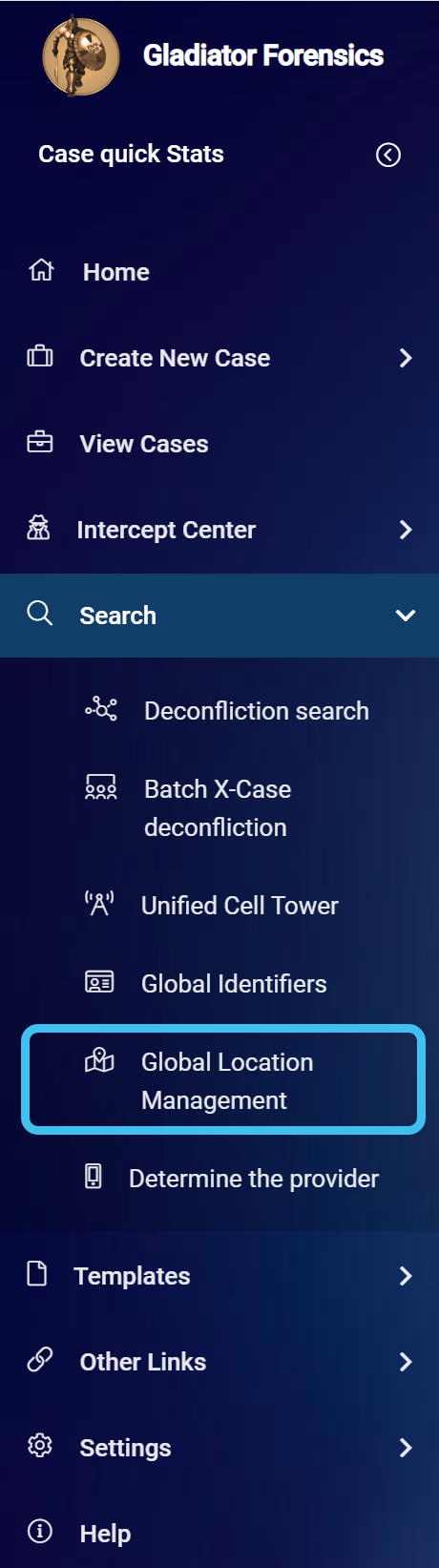 On the main menu click Search, then click Global Location Management.