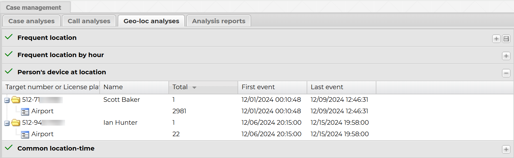 This topic details how to view which of the target locations a person was at during the time period specified in the target location. The analysis is based on geo-location files.