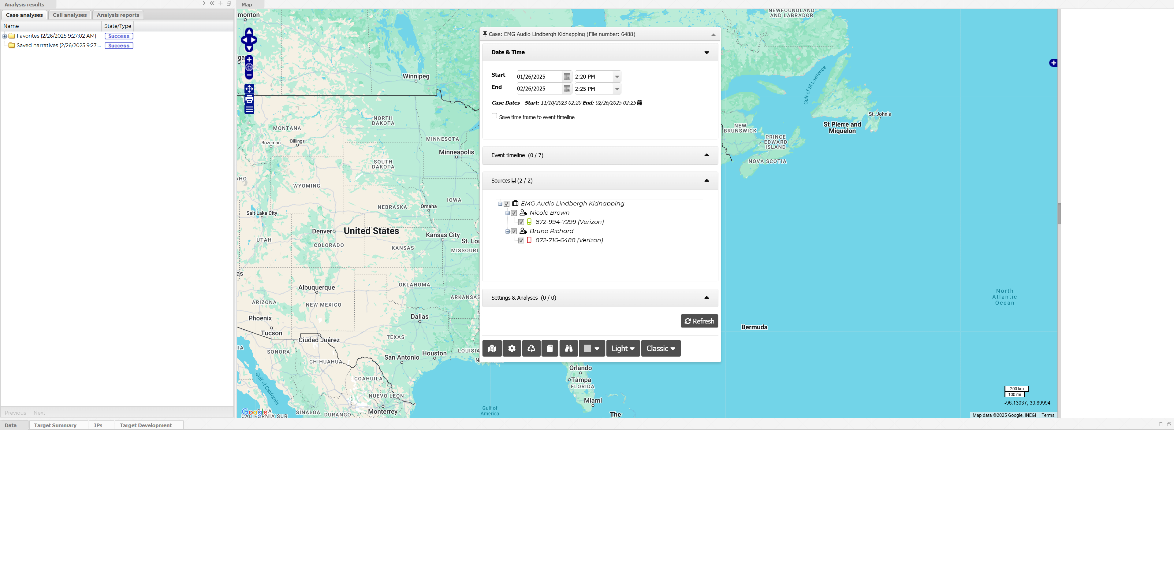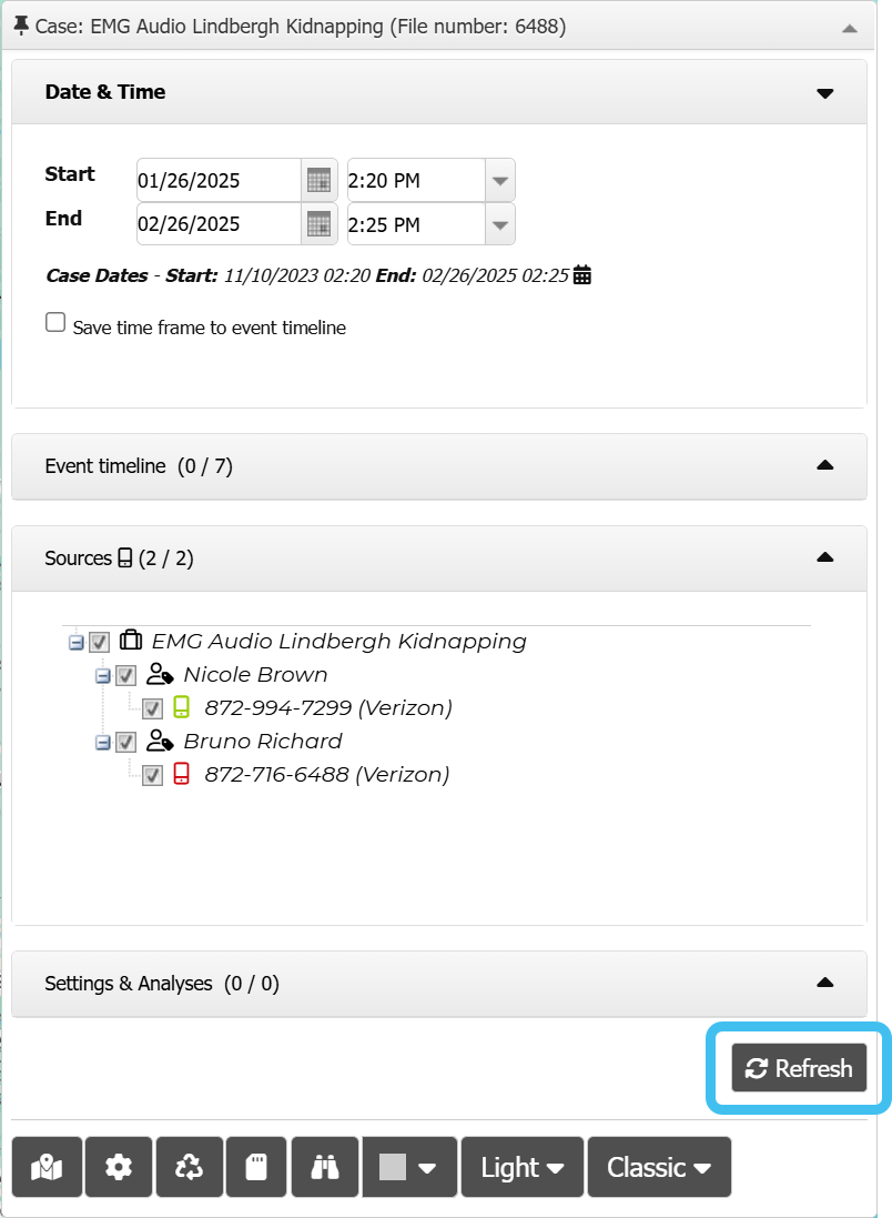 Select which sources you want to display data for. For example, if you believe there is a link between multiple phone users you may want to select them together or if you know there is no link you may only want to select one phone user at a time.