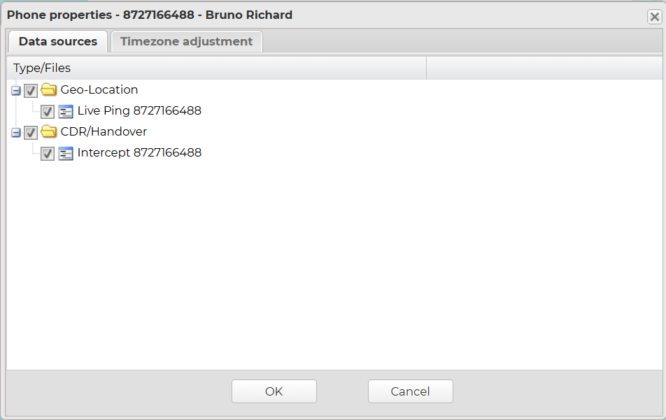 The Phone properties dialog box opens. Select the data sources you want to use then click OK.