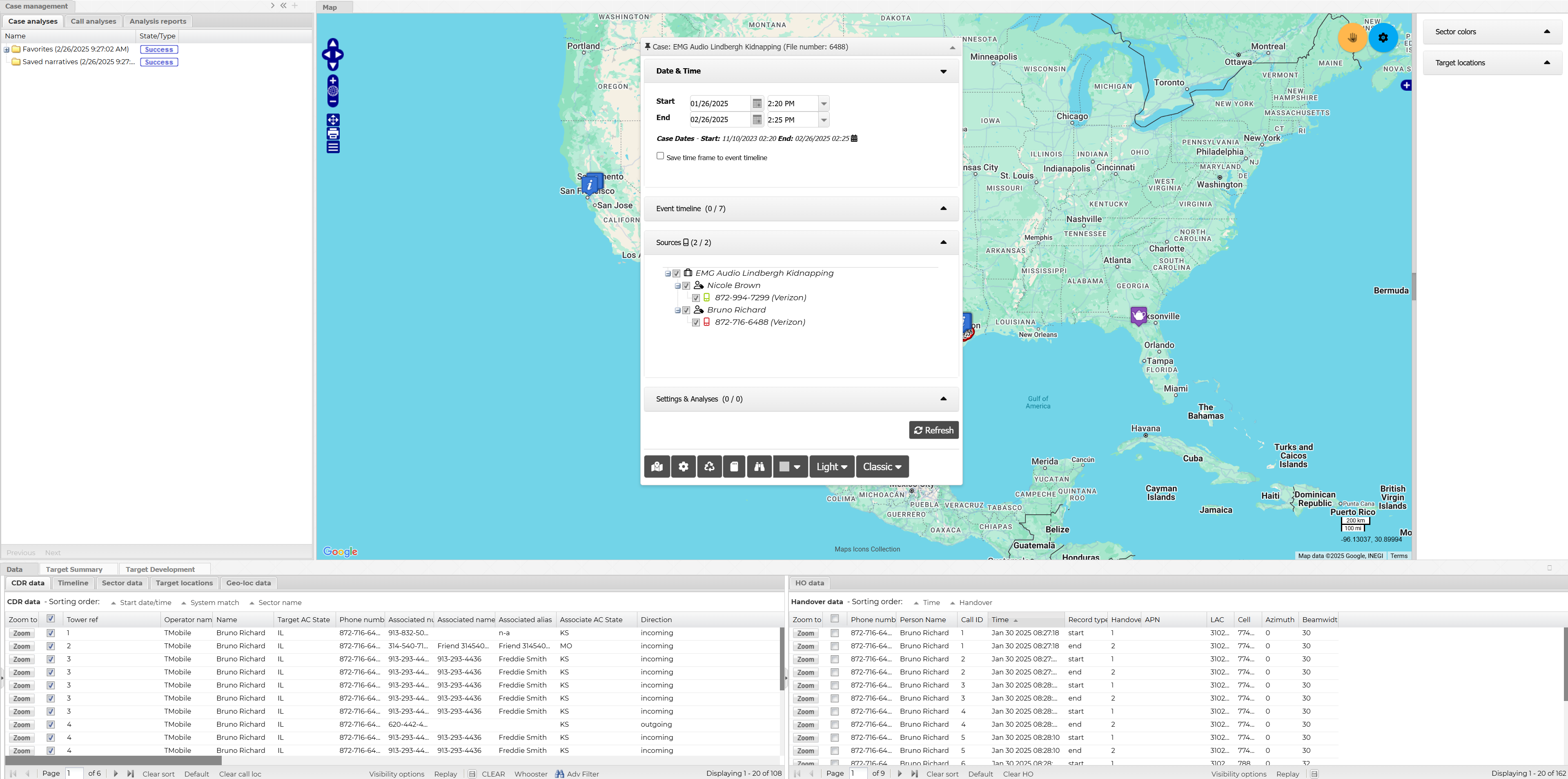 - The Data view may optionally also display a timeline, contact data, public records, geo-location data, TA data and handover data.