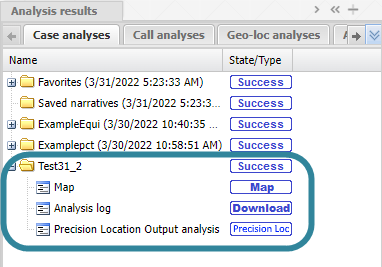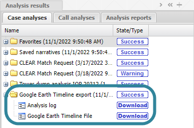 Your analysis report is listed in the Case analyses tab of the Case management view. Once the analysis is completed the state is updated. You can use the analysis results if the state is either Success or Warning.
