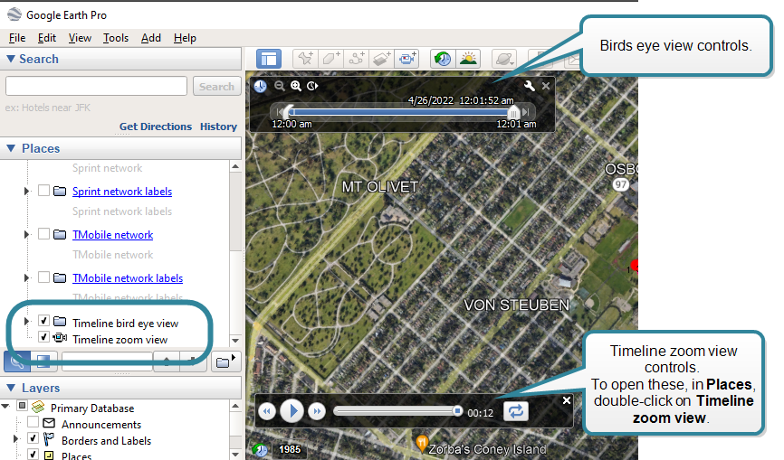 Exporting to Google Earth and Google Earth timeline