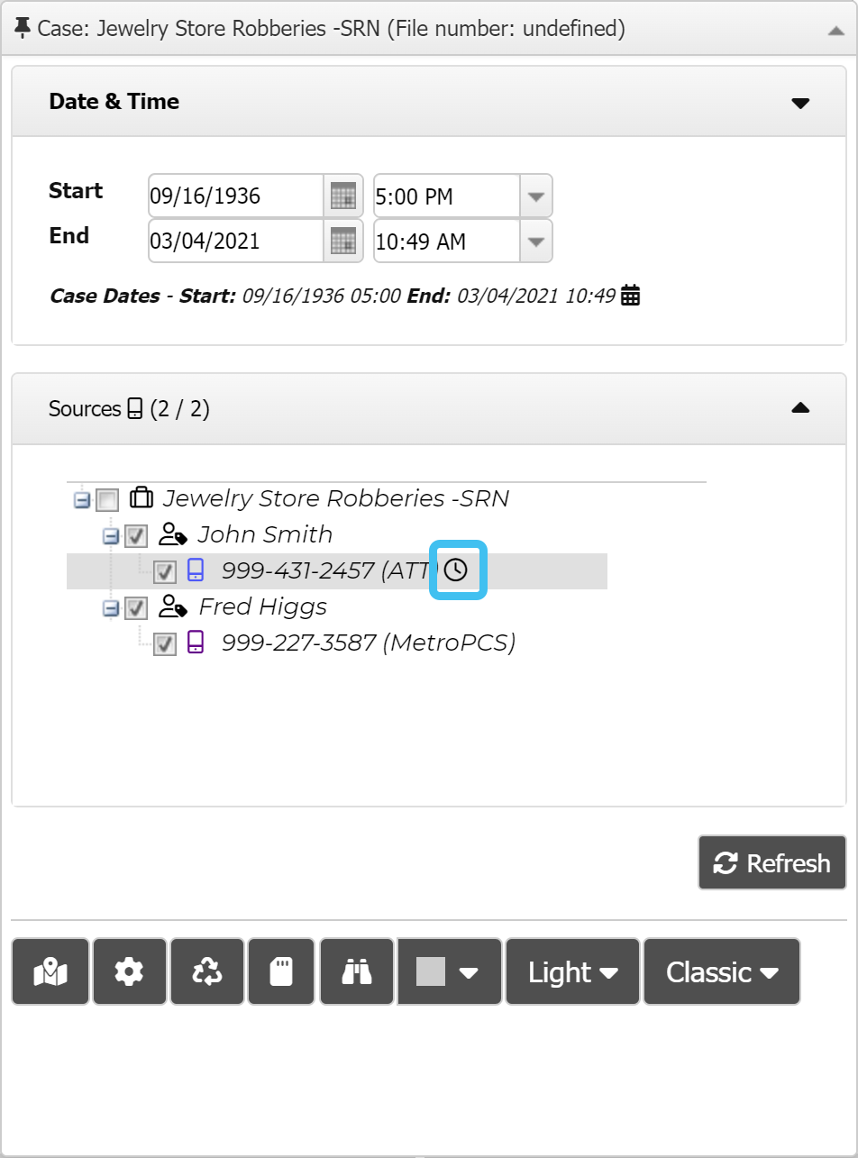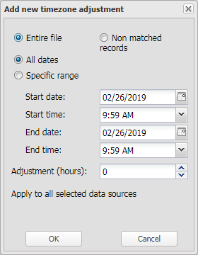 You can make timezone adjustments on a selected phone number's CDR files, phone data files and geo-location files, and on a selected vehicle's geo-location files.
