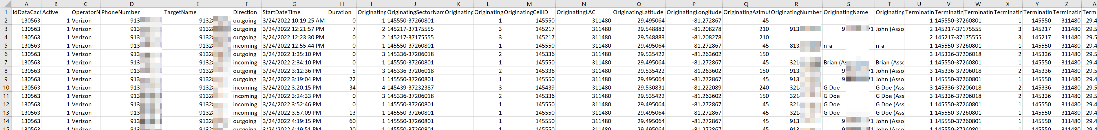 Cross referencing CDR cell site location data with the associated tower list
