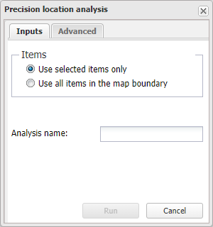 The Precision location analysis dialog box opens.
