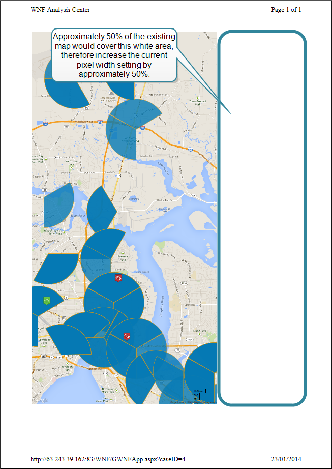 Reopen the browser print preview screen using the above procedure to determine if the map is now printing correctly. If your percentage estimation was not quite correct then you may need to adjust the Print mode map size override settings again.