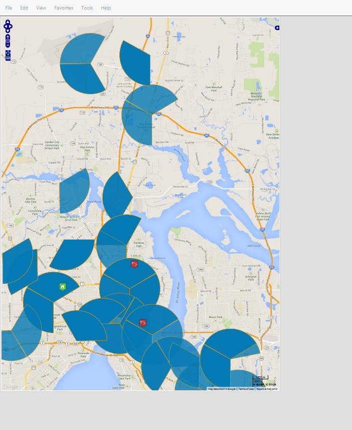 - If required adjust your browser's zoom setting so that you can view the complete map's height and width. When you are seeing the complete map it is surrounded by a thin white outline as shown in the following graphic.