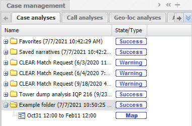 - In Map name if you want to change from the default name of date and time then enter a name for your map view then click OK. Your new map view is saved and displayed in the Case management view on the Case analyses tab under the folder you selected.