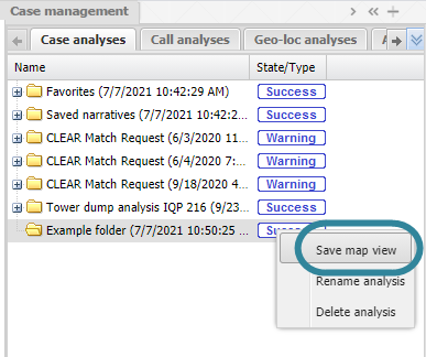 If you want to change from the default name of date and time then enter a name for your map view then click OK. Your new map view is saved and displayed in the Case management view on the Case analyses tab.