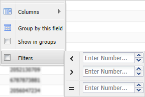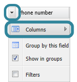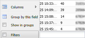 To filter the listings on the tab select the column title you want to group by, then select Filters. The type of menu available from Filters depends on the column title you selected. For example, you may want to filter the data by: