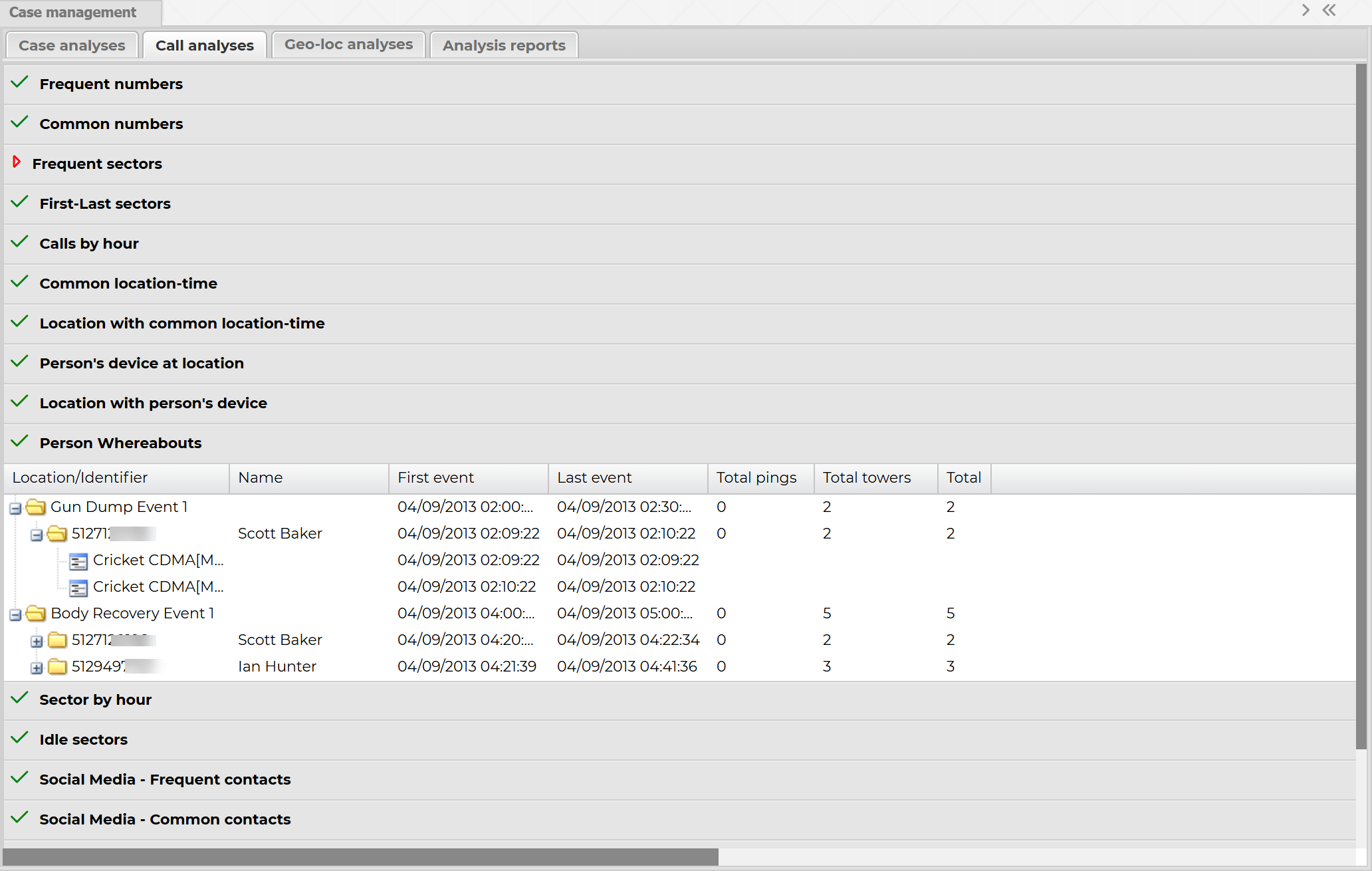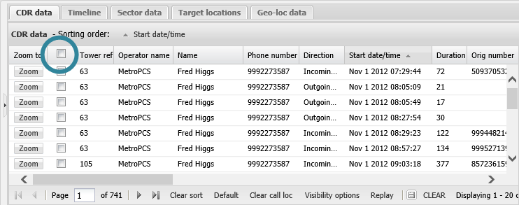 - Review the CDR data tab which only shows calls with the event with person's device identifier you selected.