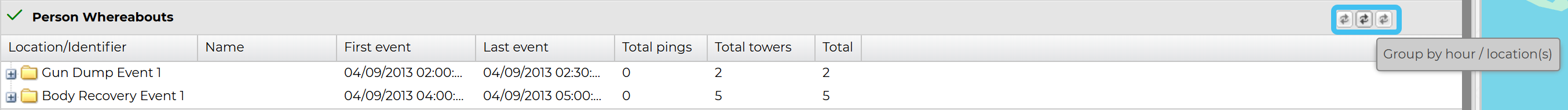 This topic details how to view where a person was during the events on the Event timeline. The analysis uses both GPS ping and CDR data.