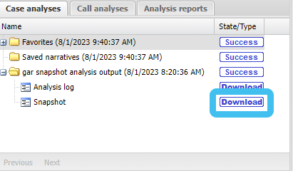 Your analysis report is listed in the Case analyses tab of the Case management view. Once the analysis is completed the state is updated and you are also automatically notified by email. You can use the analysis results if the state is either Success or Warning.