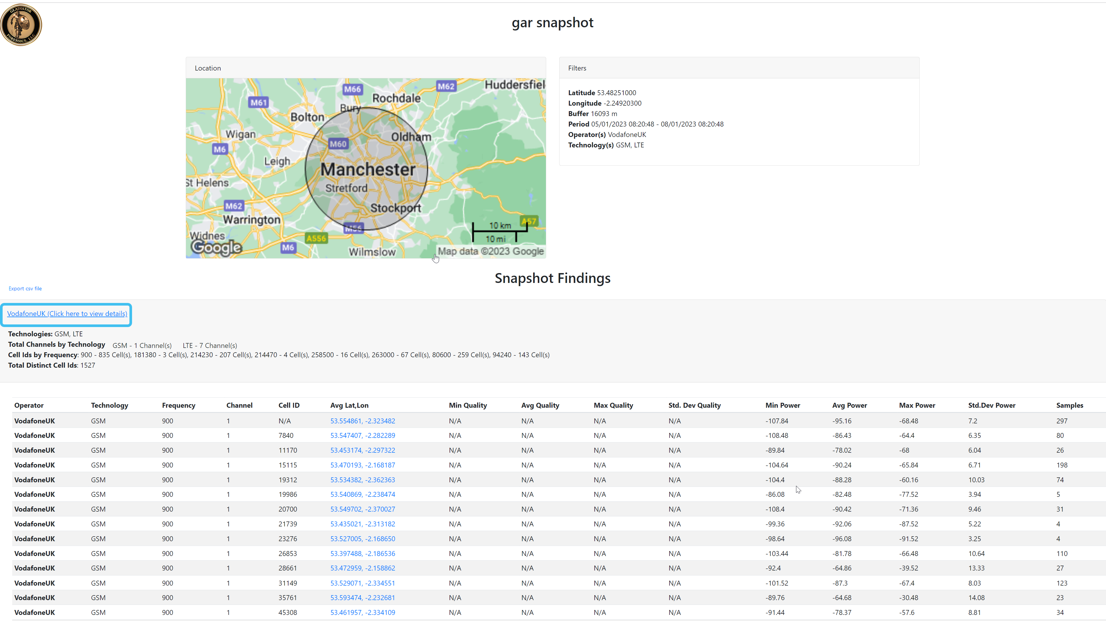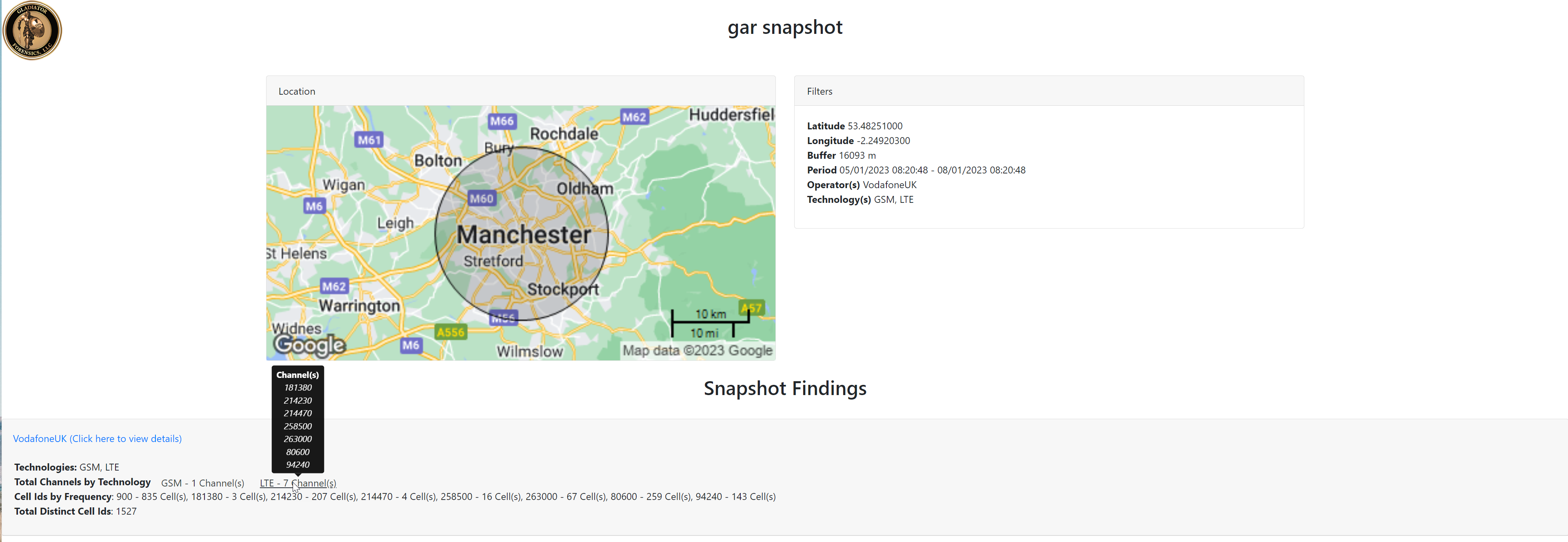 If you want to identify which cell towers provide coverage in a specific location, you can run a snapshot analysis to identify them.