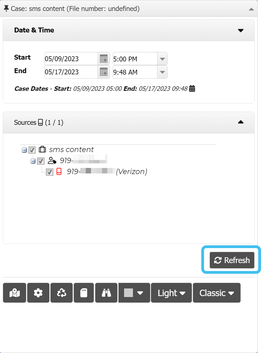 If you have not already done so you must first upload the Verizon SMS files to your case.