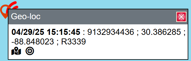 Click the icon in the Actions column to center the location of the GPS ping on the map. The most recent GPS ping is displayed on the map with a spinning