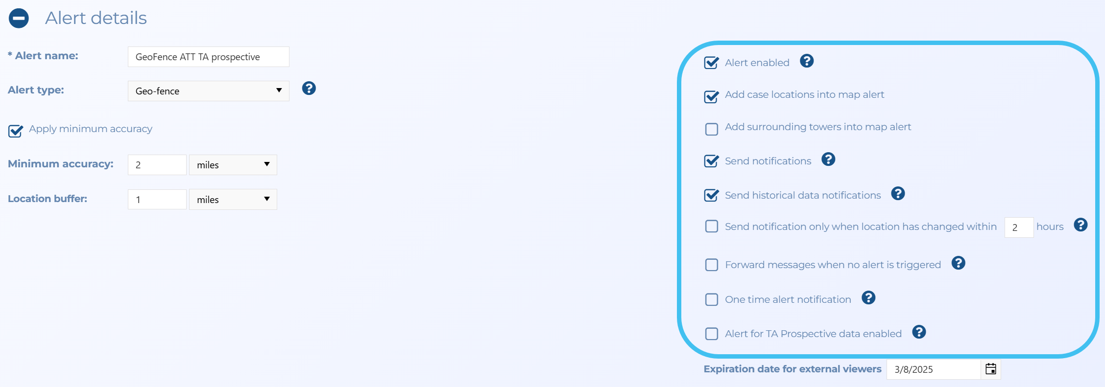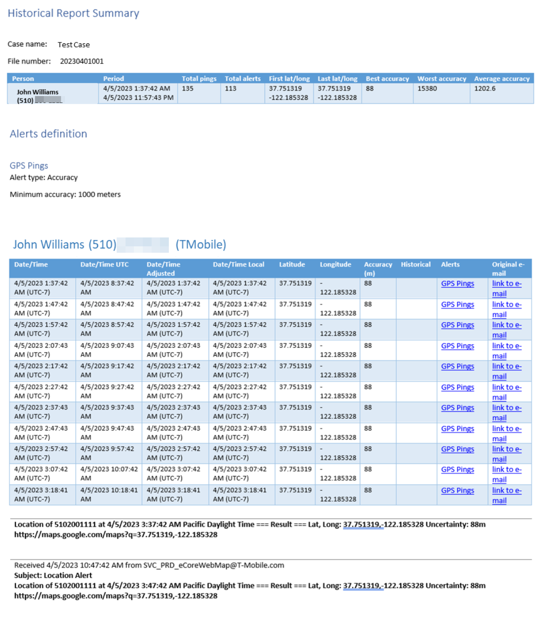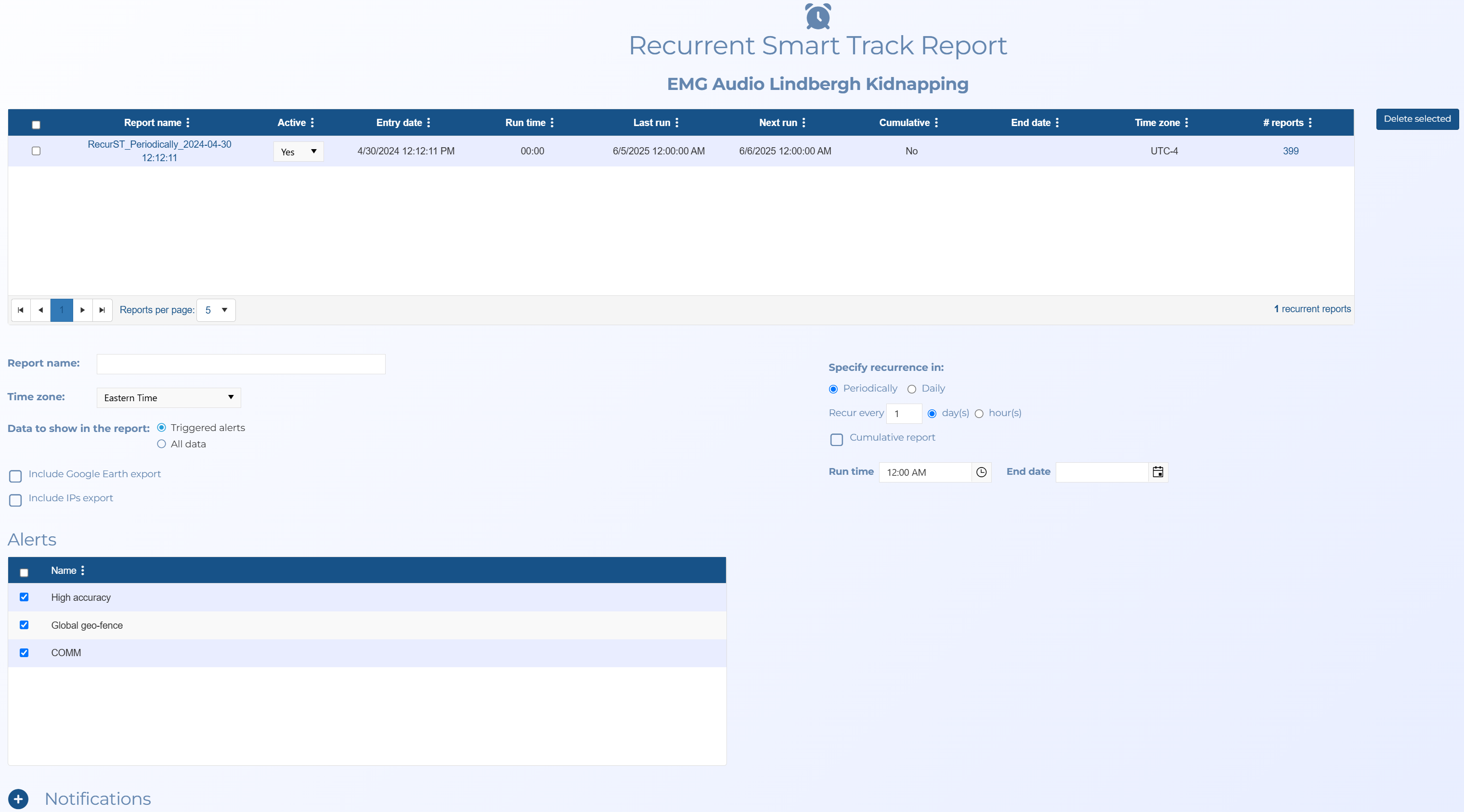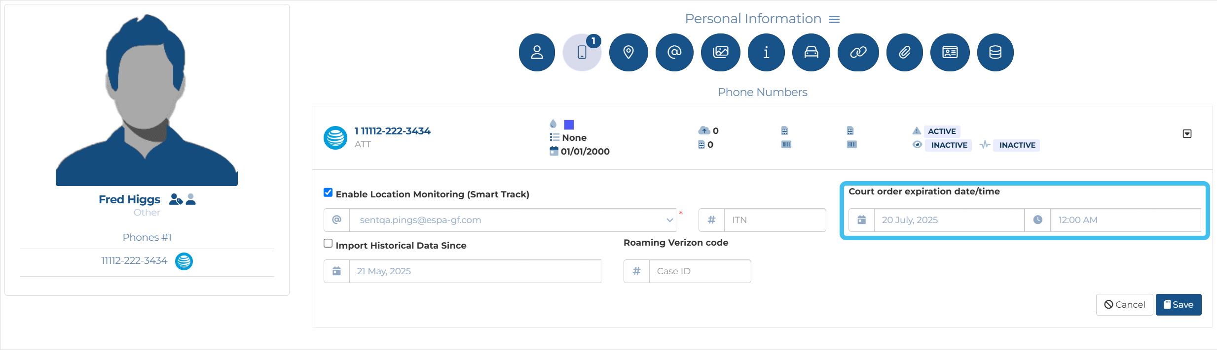Smart Track provides you with a tracking and alert system. It performs tracking which is based on a GPS ping email interface and the optional intercept monitoring interface (i-case). Smart Track allows you to monitor a mobile phone's or a vehicle's movement and alerts you when certain conditions occur. OSS-ESPA automatically imports live location monitoring tracking events provided by the phone operators and license plate reader providers, and location information from social media locations. For phones this is currently only by ATT, T-Mobile, Sprint and Verizon. This type of event is generated periodically, for example every 5 to 15 minutes. For the optional electronic surveillance, the support is done via a live collection function interface with the operator. Smart Track also generates alerts for other conditions such as a phone being switched off.