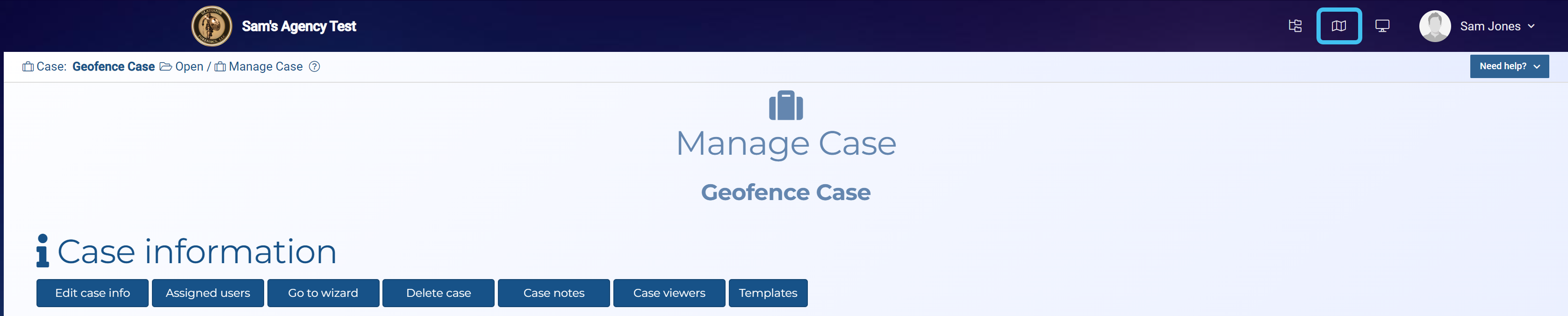 2. For the case you want to upload geofence and tower dump files to, open the Manage case screen.