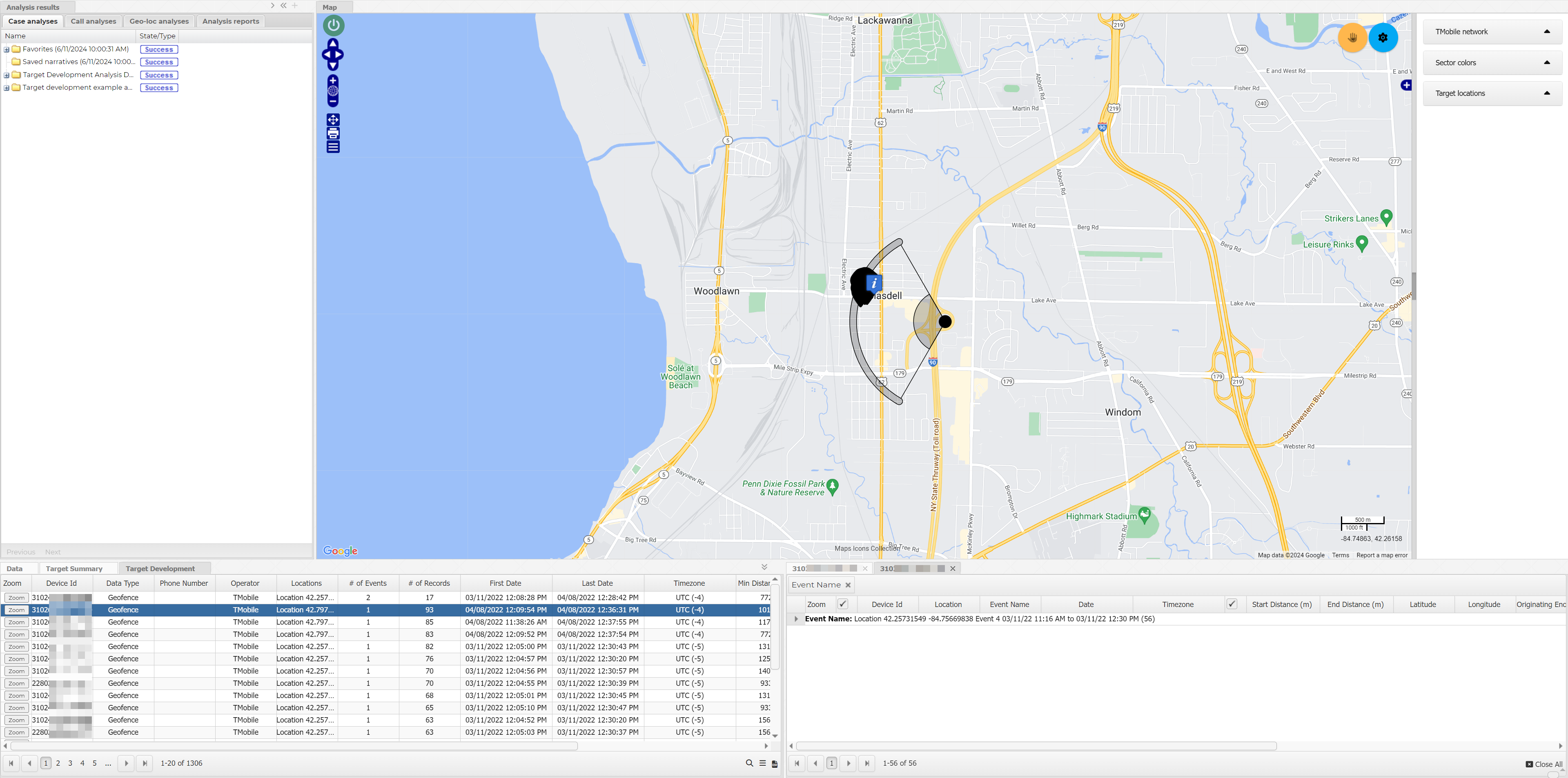 This topic explains how to upload geofence and tower dump files to a case and then analyze the data using the Target development analysis.
