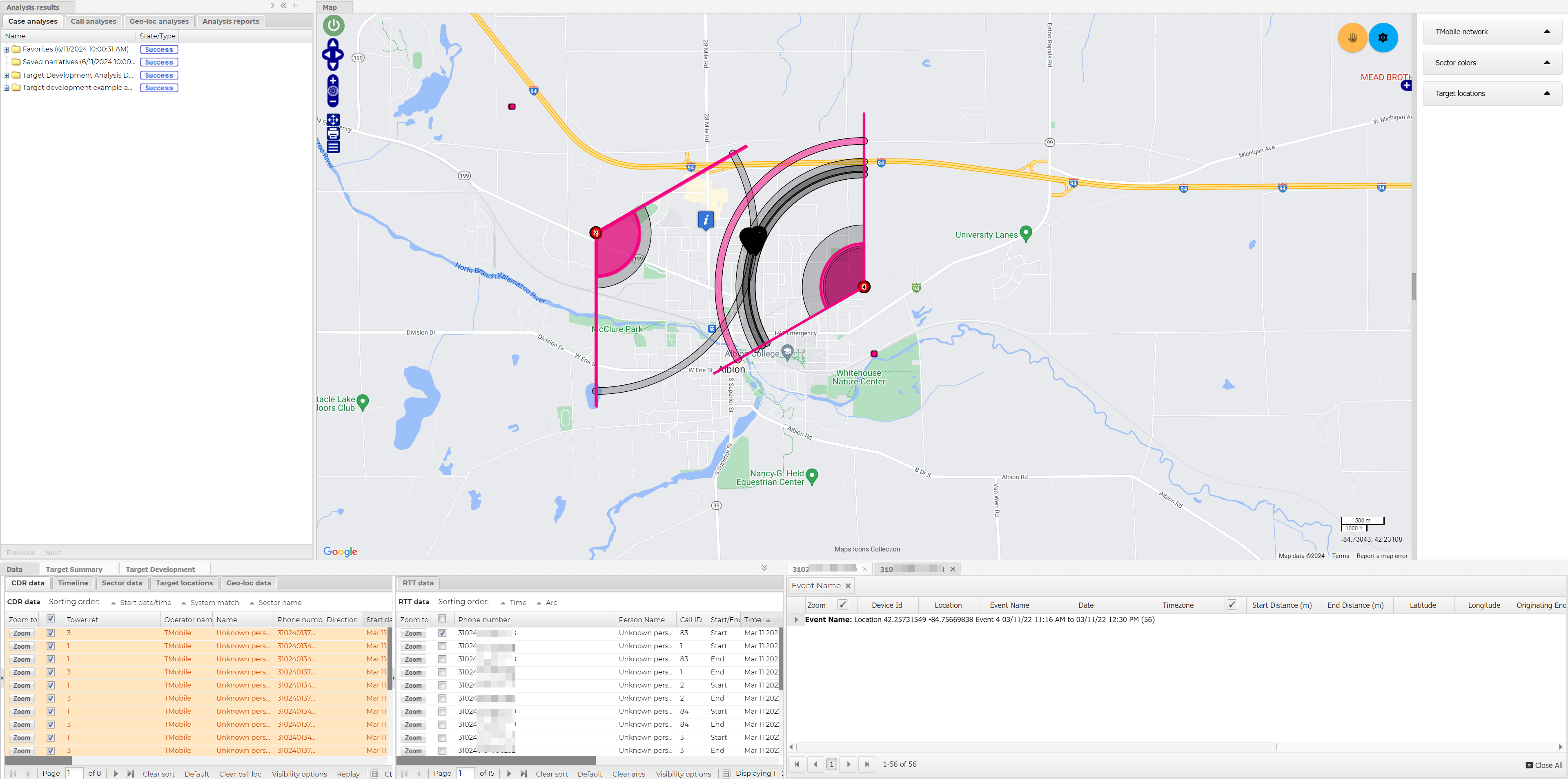 For short videos showing how to use the target development analysis to analyze geofence and tower dump files click the following links.