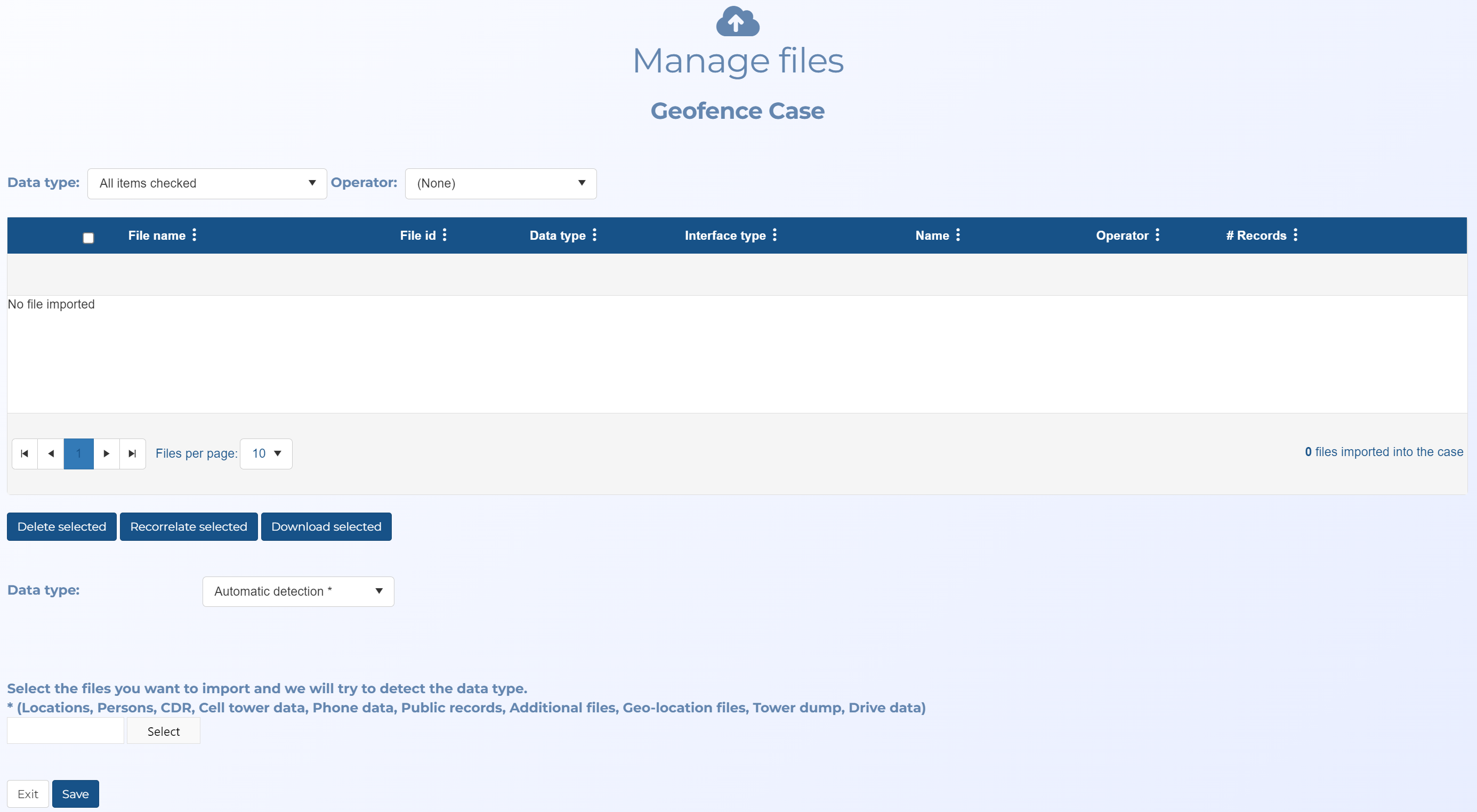 For geofence and tower dump cases you can either manually create your locations before or after uploading the files, or you can allow OSS-ESPA to automatically create locations for you from the data in the files. The following procedure details the later option, where OSS-ESPA creates them automatically, and provides recommendations on the order of uploading your files.