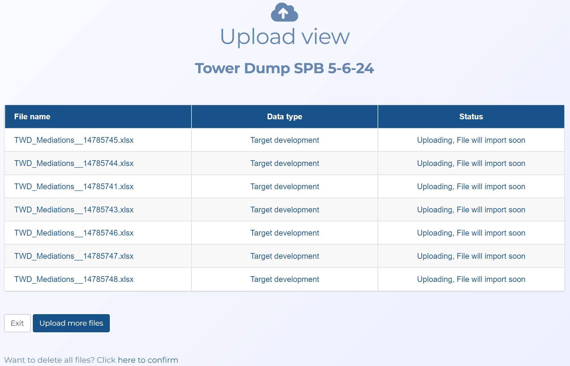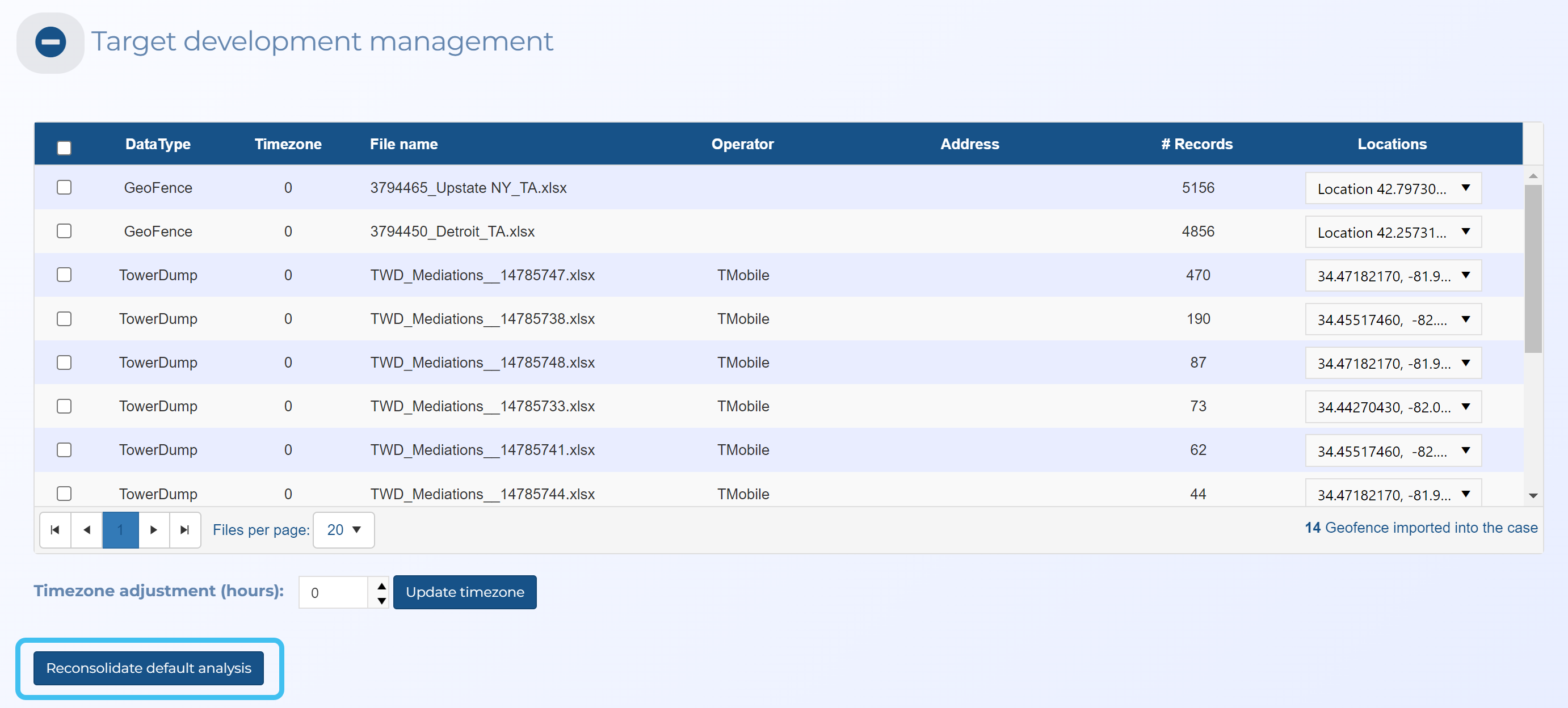 2. Upload your T-Mobile tower dump files with Data type set to Target development and File location set to Detect location in key file. This then imports the files and automatically associates them to the correct locations and events.