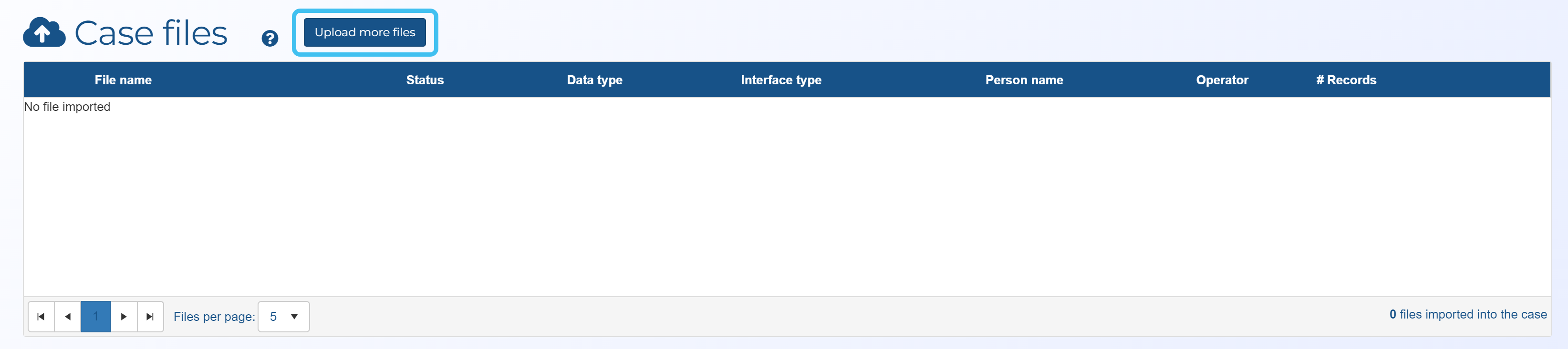 3. On the Manage case screen click Upload more files.