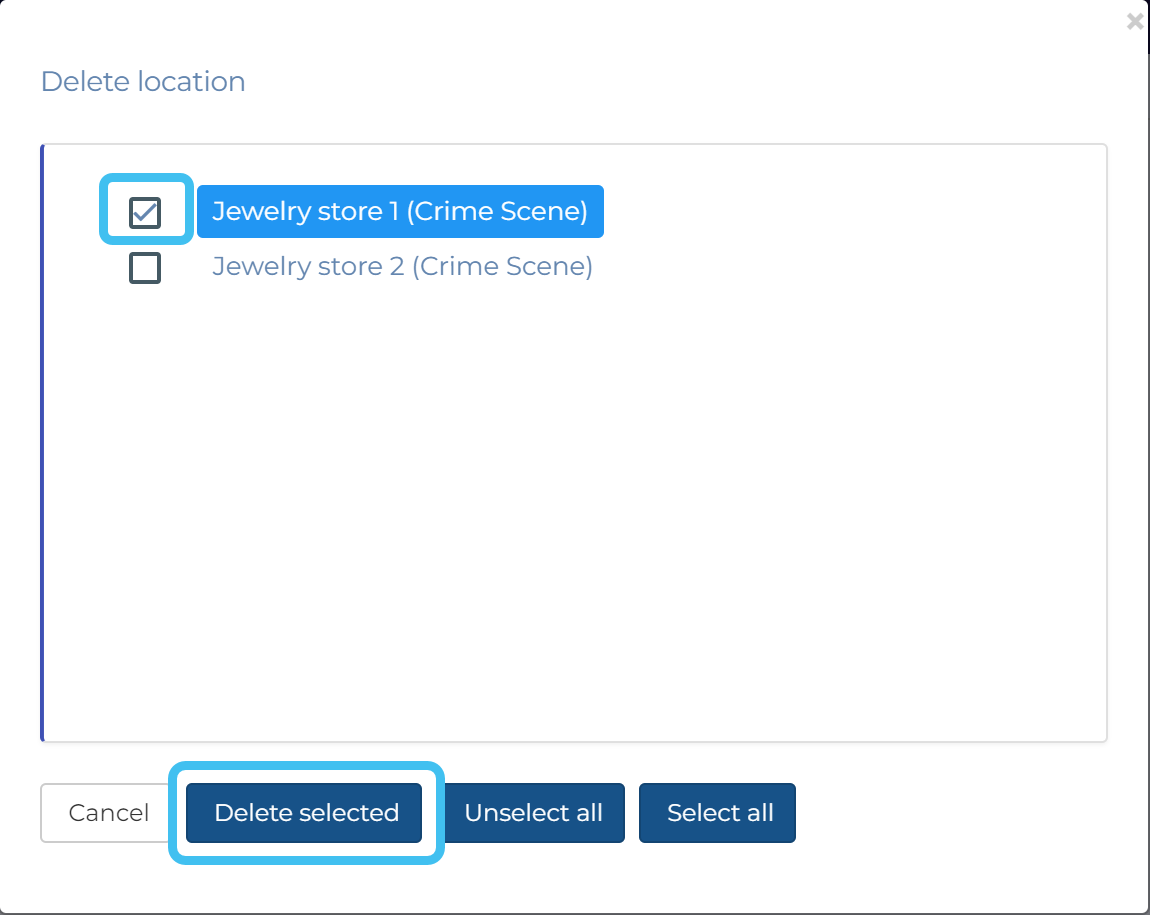 Select the check-box next to the locations you want to delete then click Delete selected.