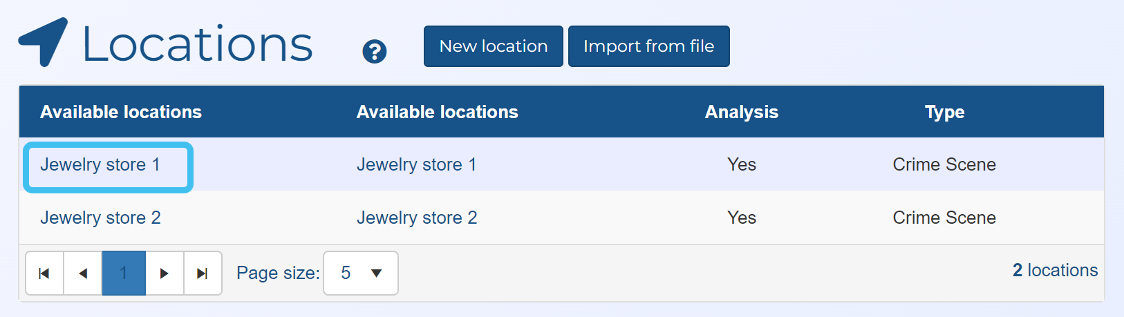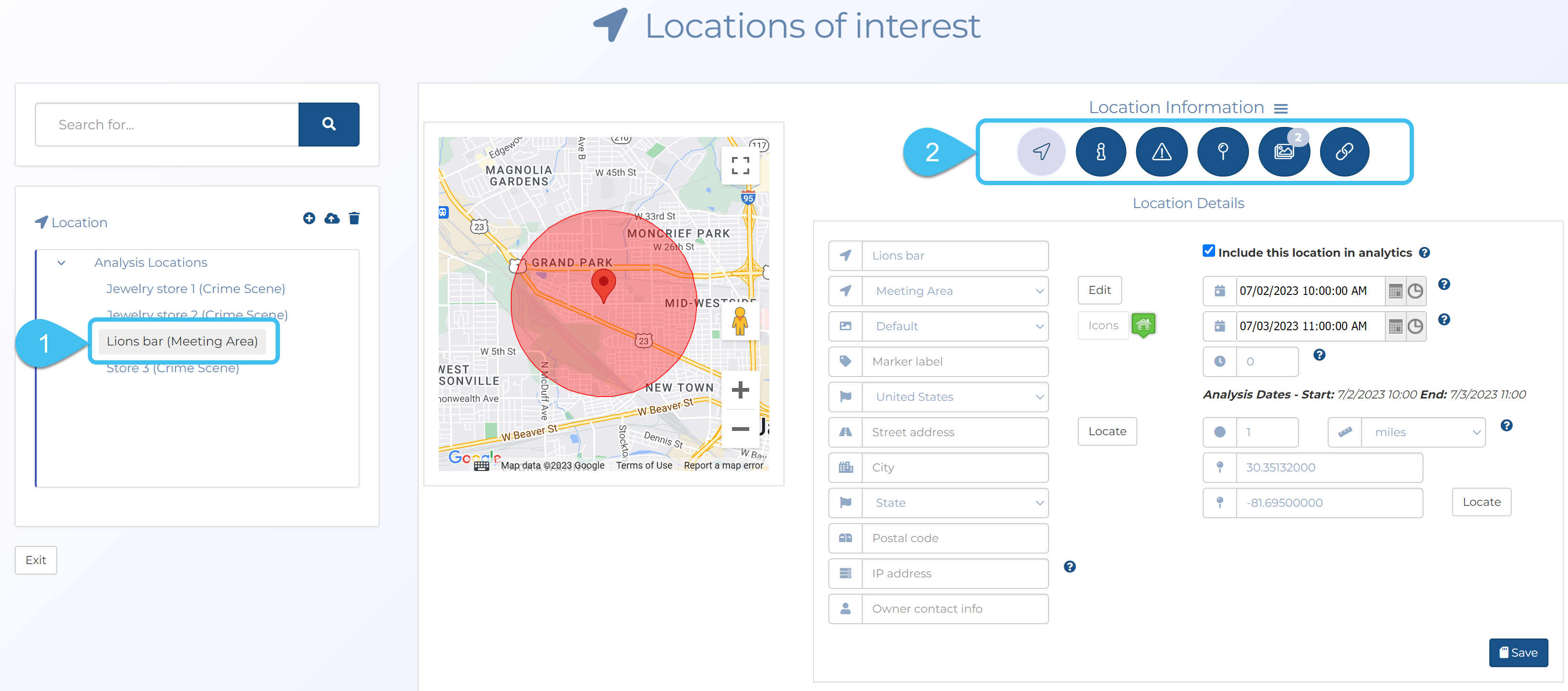 If you require an overview of what locations are, or a detailed description of the settings refer to Locations of interest screen (Case management).