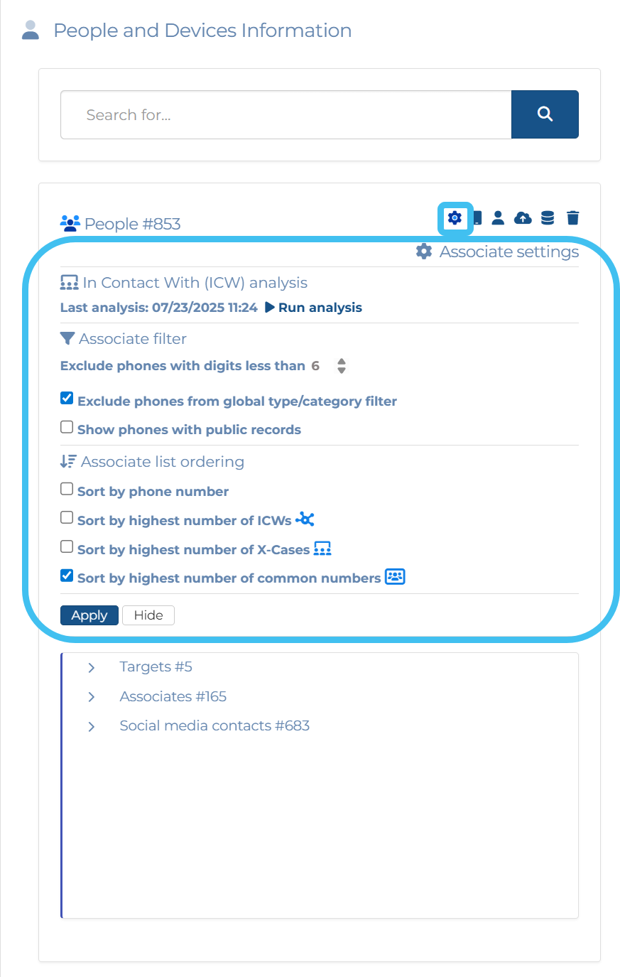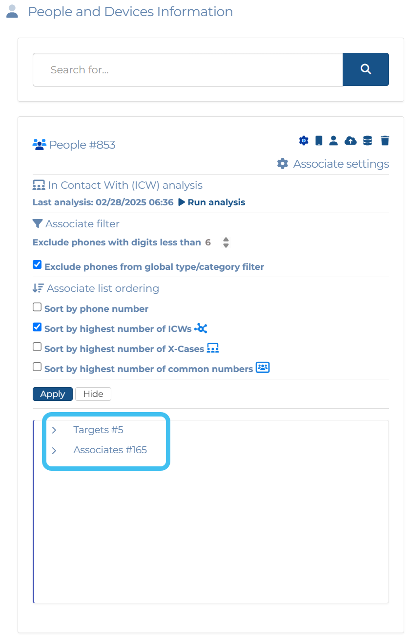 You can also click here for a short video on the People and devices screen which includes how to view the associates and other targets they are in contact with.