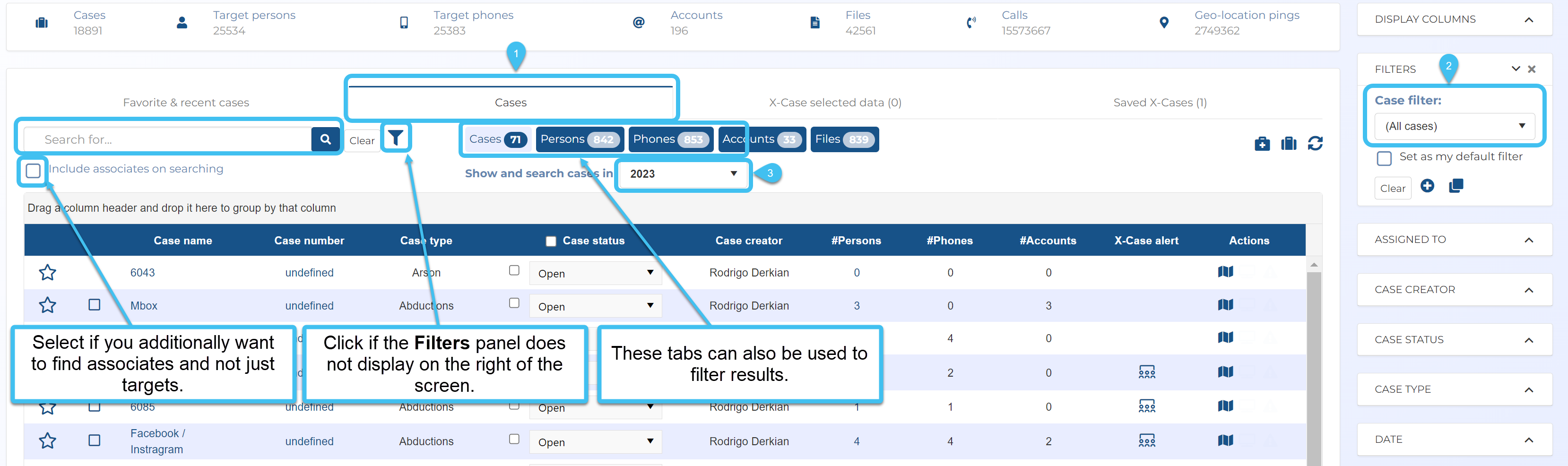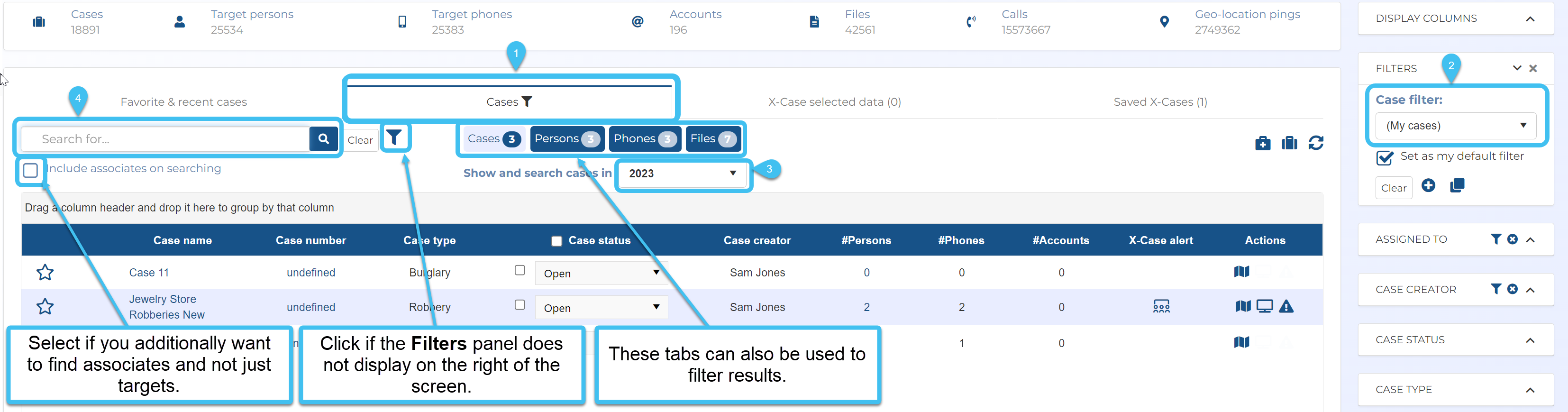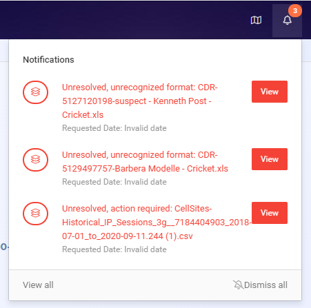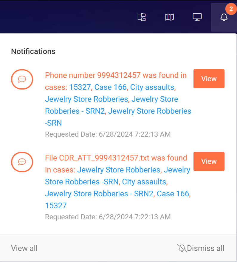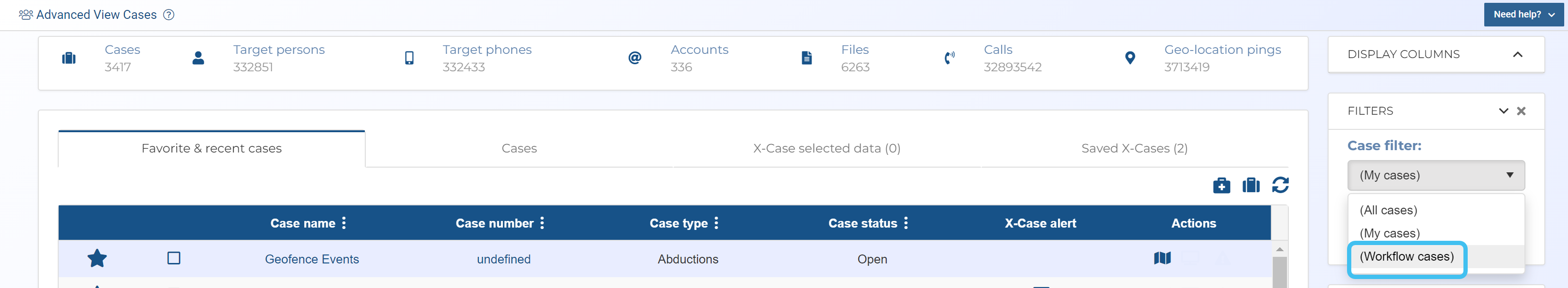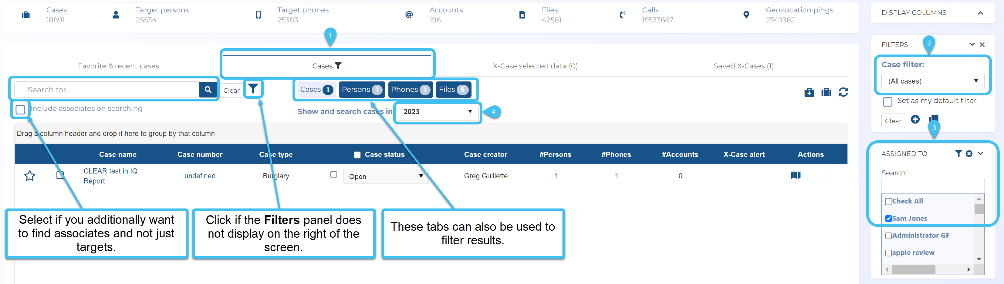 The Case management features allow you to create and manage your cases, and request and manage IQ packet reports. You can create cases for different purposes such as for: historical analysis, target development analysis (through geofence and tower dumps), live monitoring Smart Track, Sentinel intercept monitoring and Live wiretap monitoring. It is within Case management that you create the structure of you case, which may include: people, locations, timelines, i-cases, Smart Track alerts and files of interest such as CDRs (Call Detail Records), phone data files, public record files, geo-location files, geofence files, tower dump files, cell tower data, drive data, social media files,location files, person files, subscriber information and additional files.
