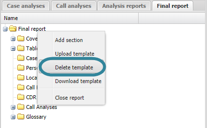 On the <Report name> tab, right-click the top level folder in the report, then click Delete template.
