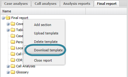 On the <Report name> tab, right-click the top level folder in the report, then click Download template.