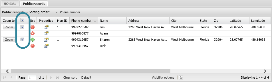- Click the Public record tab which now displays the public record data you previously had saved to your report.