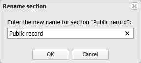 Enter a name for your new public record item then click OK. The duplicated public record item is displayed in the report structure. If you want to move it's position then left-click it and drag it to a new position.
